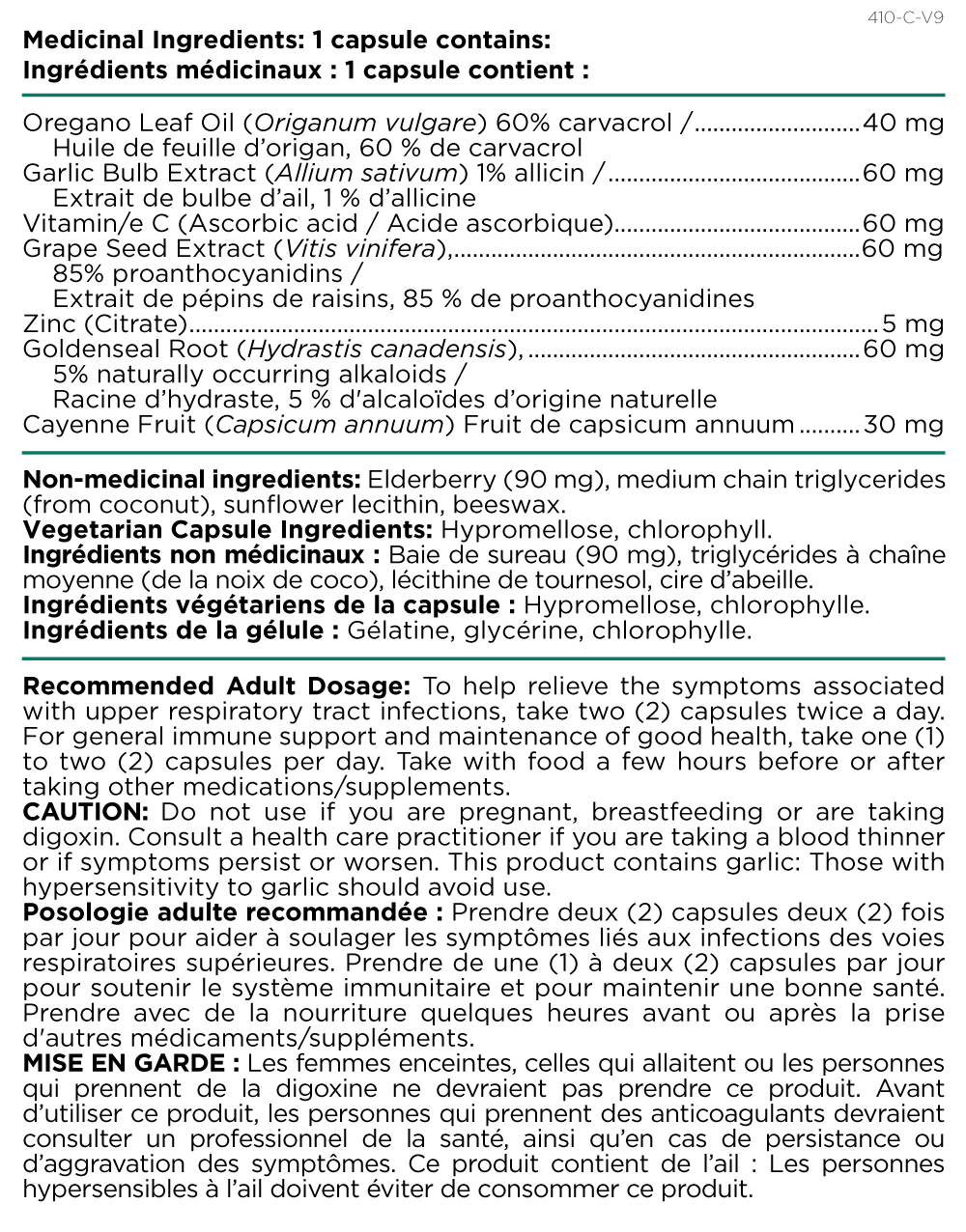 When taken at the first sign of symptoms, Oregano-8’s synergistic blend of 8 powerful immune boosters, is fast and effective for fighting symptoms of colds and flu. It contains 40 mg of oil of oregano, known for its strong anti-microbial and anti-bacterial properties. The power of oil of oregano is multiplied through the combination of garlic, goldenseal, elderberry, vitamin C, zinc, cayenne and grape seed extract.