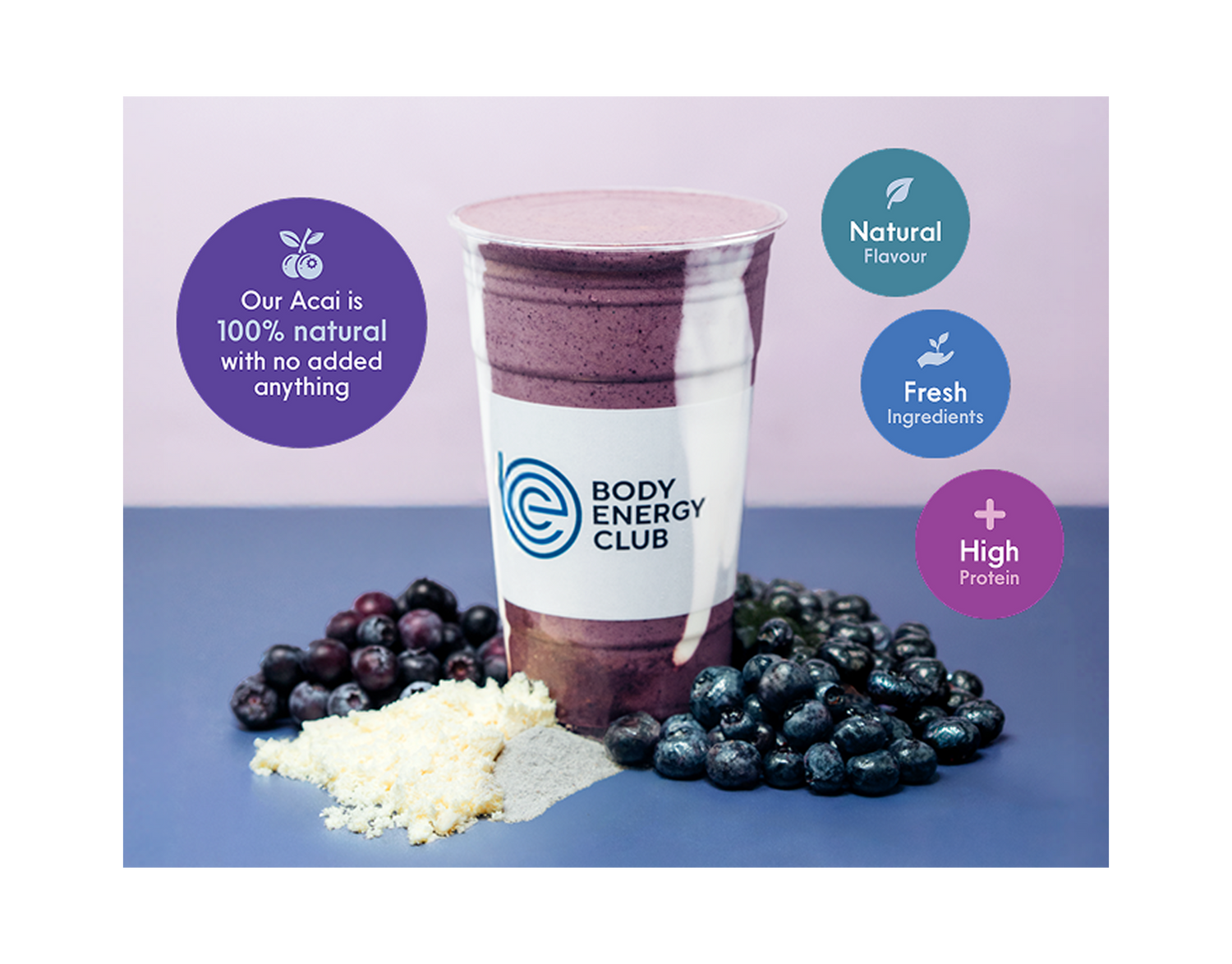 Curated smoothie & Power Fuel pairings for your daily boost. Available with Blueberry Acai, Green Goddess & Thunder Coffee!
