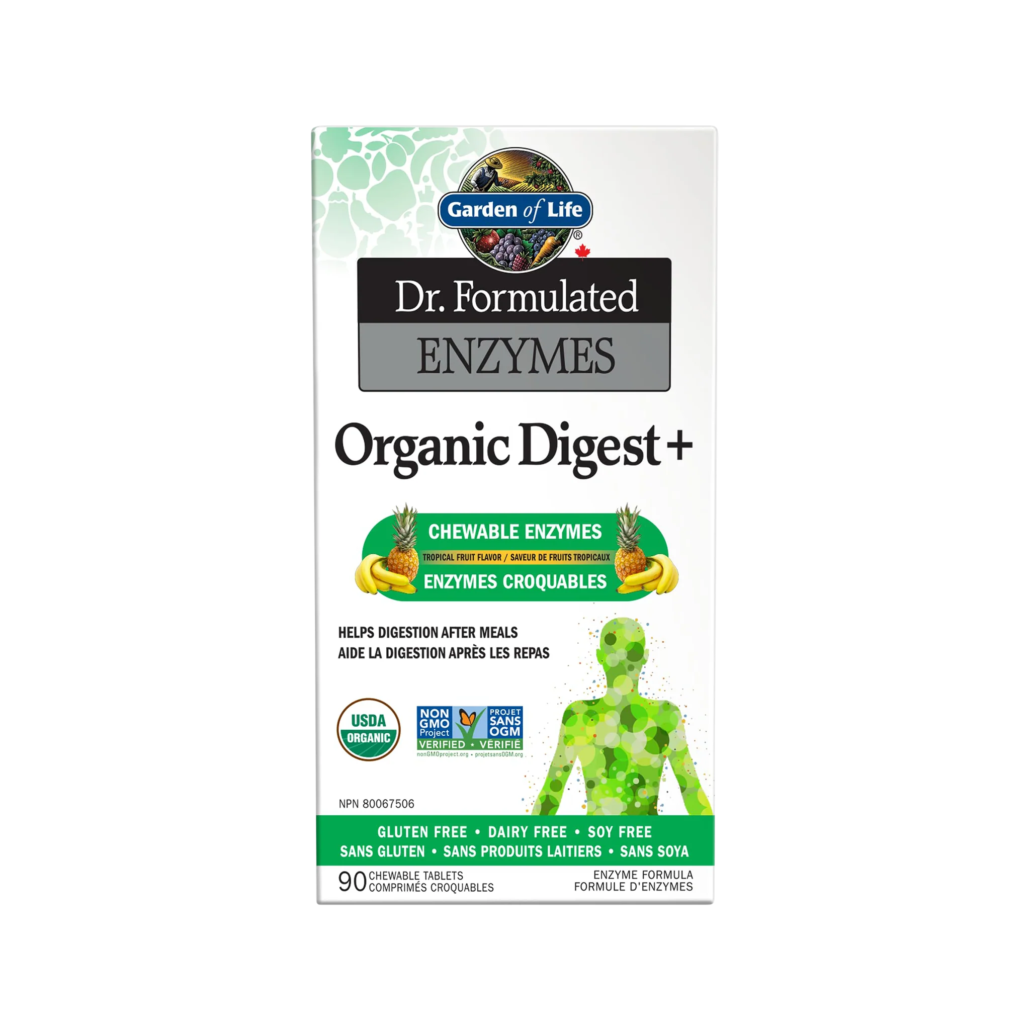Dr. Formulated Enzymes Organic Digest + is the first and only USDA Certified Organic and non-GMO delicious chewable vegan enzyme.