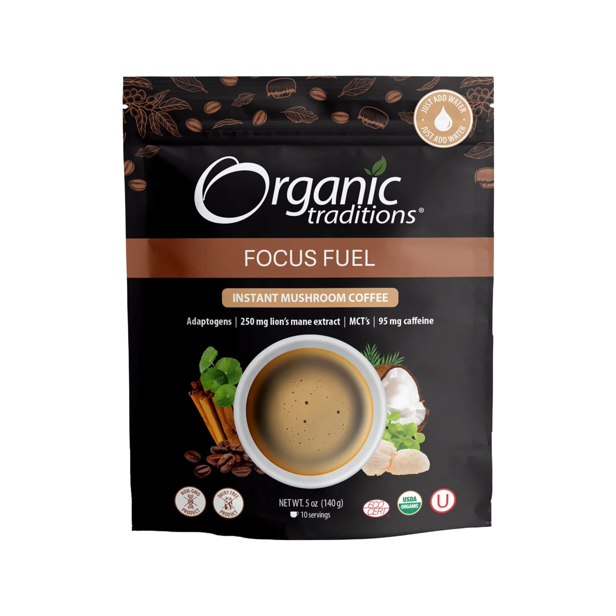 Organic Traditions Focus Fuel Coffee is an instant coffee blend with lion's mane mushroom, adaptogens, c8 MCT and plant-based omegas. This instant coffee blend is dairy free, made with Organic Traditions' signature coconut milk powder and provides you with an energizing, brain-nourishing formula with adaptogens and quality fats*. Organic Traditions Focus Fuel Coffee support focus, memory and creativity*.