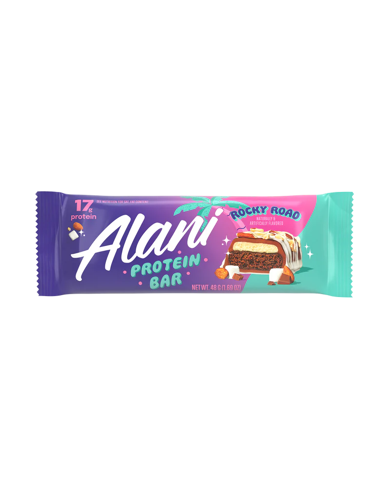 Stuck on smarter snacking? Us too! Our chewy Caramel Crunch Alani Protein Bars are gluten free and packed with 16g of protein, 190 calories and 8g of sugar. Made with a gooey, melt-in-your-mouth caramel center, we top each treat with salty peanuts and sweet chocolate.