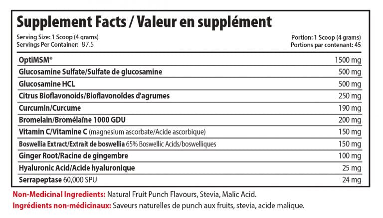 MSM (Methylsulfonymethane) is a naturally occurring sulfur compound. Clinical studies have shown it to inhibit pain impulses along nerve fibers, and to reduce inflammation in joints.
