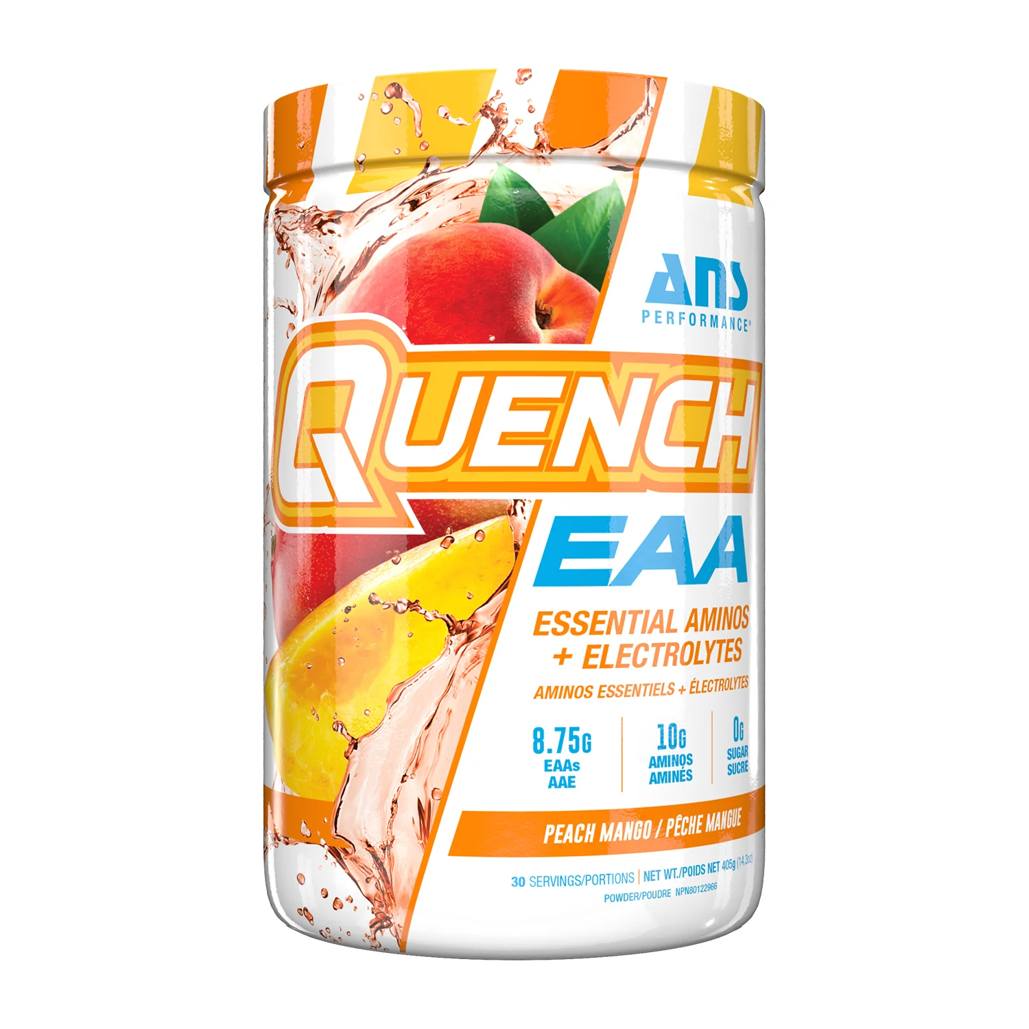 ANS Performance Quench EAA is a complete intra-workout formula designed to support hydration, endurance, and muscle recovery. Each serving delivers 10 g of total amino acids, including 8.75 g of essential amino acids (EAAs) and 7 g of fermented BCAAs, which help stimulate muscle protein synthesis and reduce muscle breakdown during training.