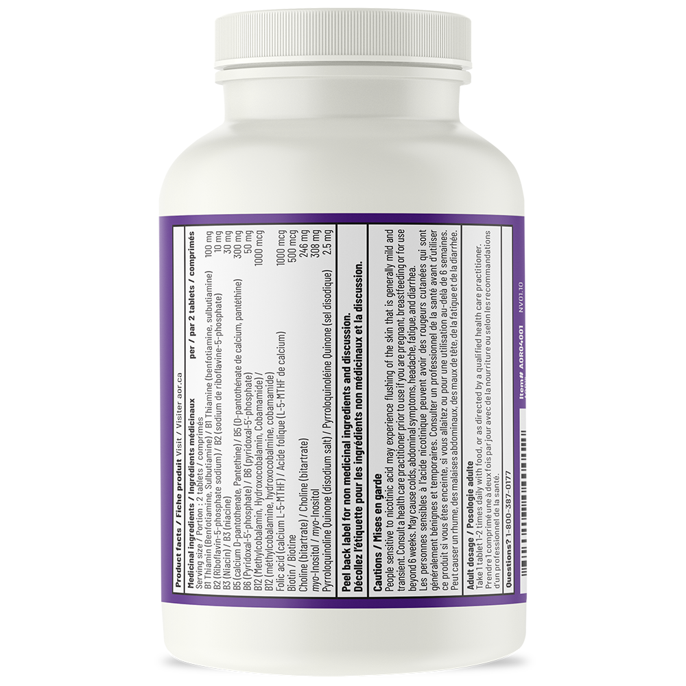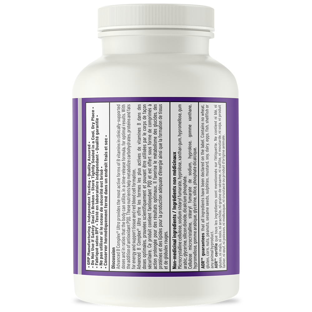 Advanced B Complex Ultra builds on the foundation of AOR’s award-winning Advanced B Complex® by offering additional antioxidant support and enhanced absorption. This advanced formula uses time-release technology to deliver a steady supply of B vitamins throughout the day and includes the full spectrum of B vitamins—some in multiple active forms to ensure optimal efficacy in the body.