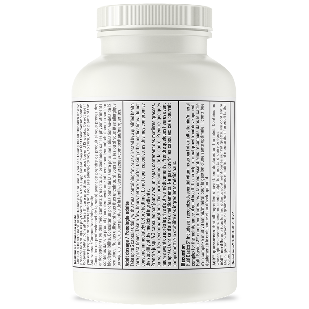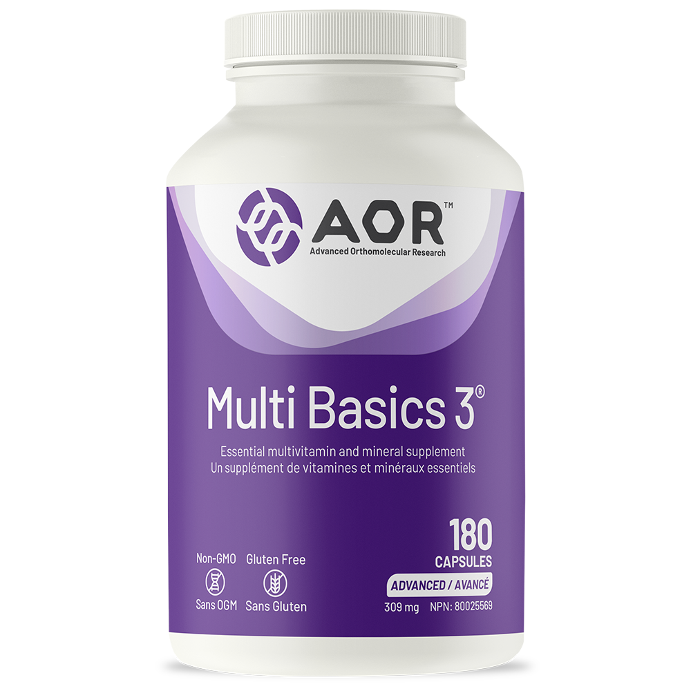 AOR Multi Basics 3 provides optimal doses and balanced ratios of all the recognized essential vitamins and minerals in high quality forms supported by research, all in just 3 capsules a day.