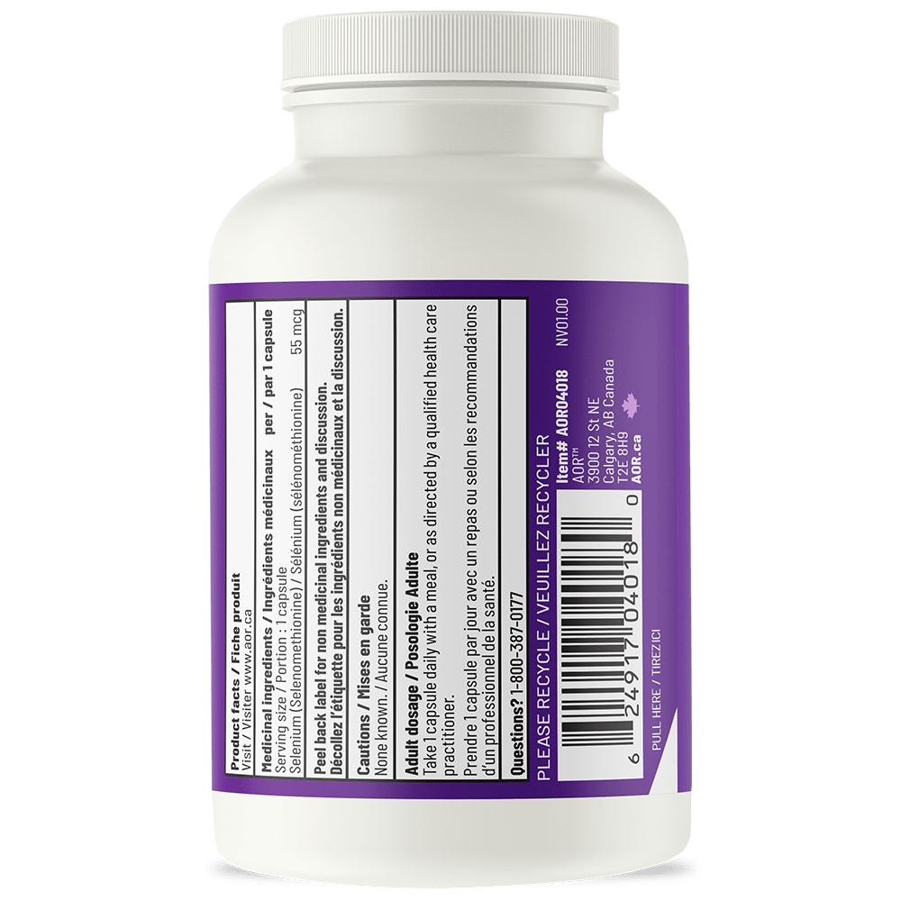 AOR’s SeMet offers a well-tolerated and effective way to ensure adequate selenium levels, especially important in regions where selenium-rich soil is depleted. Each capsule delivers the recommended dietary allowance of 55 mcg, making it a convenient and dependable option for daily health support.