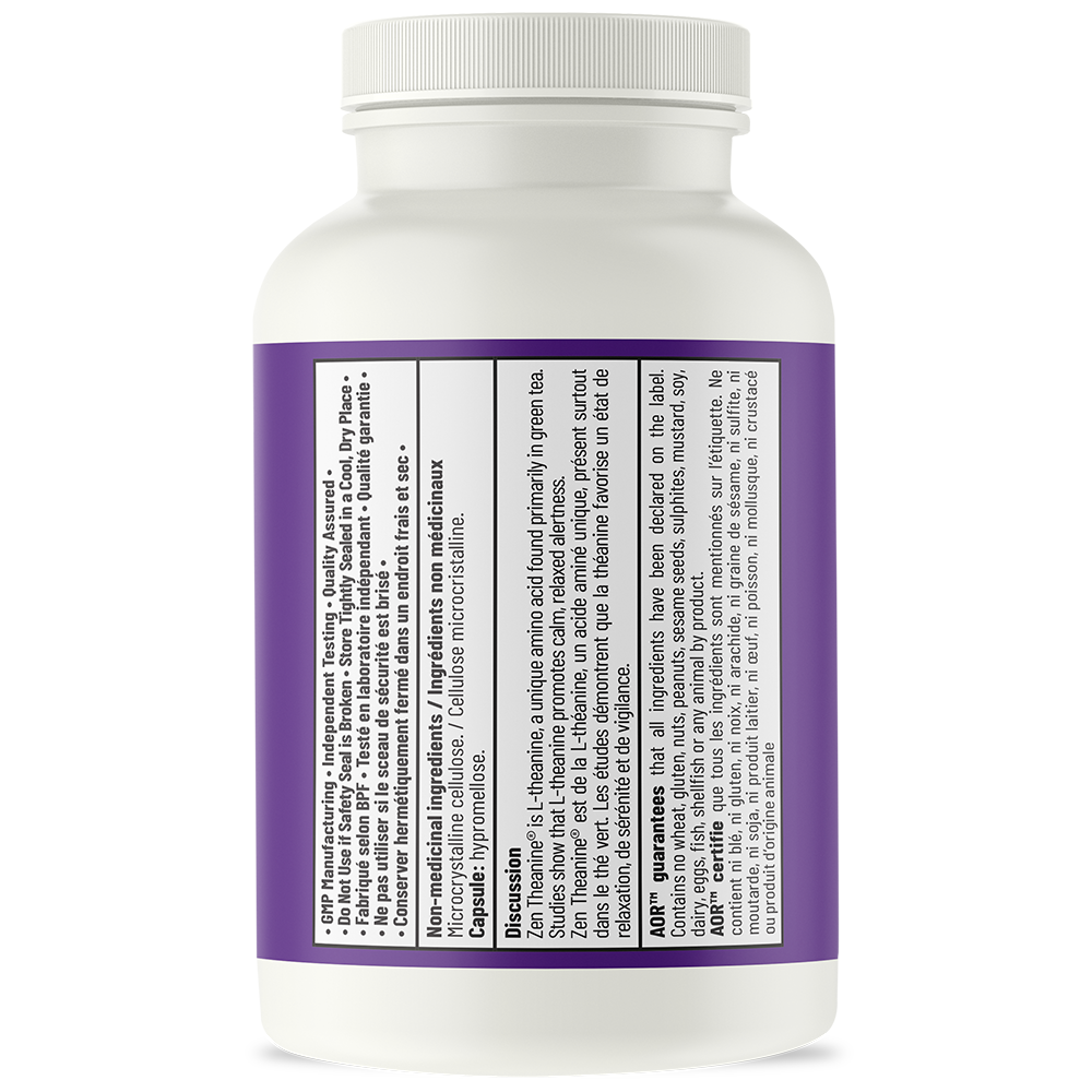 AOR’s Zen Theanine® provides an optimal dose of pure L-theanine to encourage a peaceful, focused state of mind—perfect for managing the mental demands of modern life.