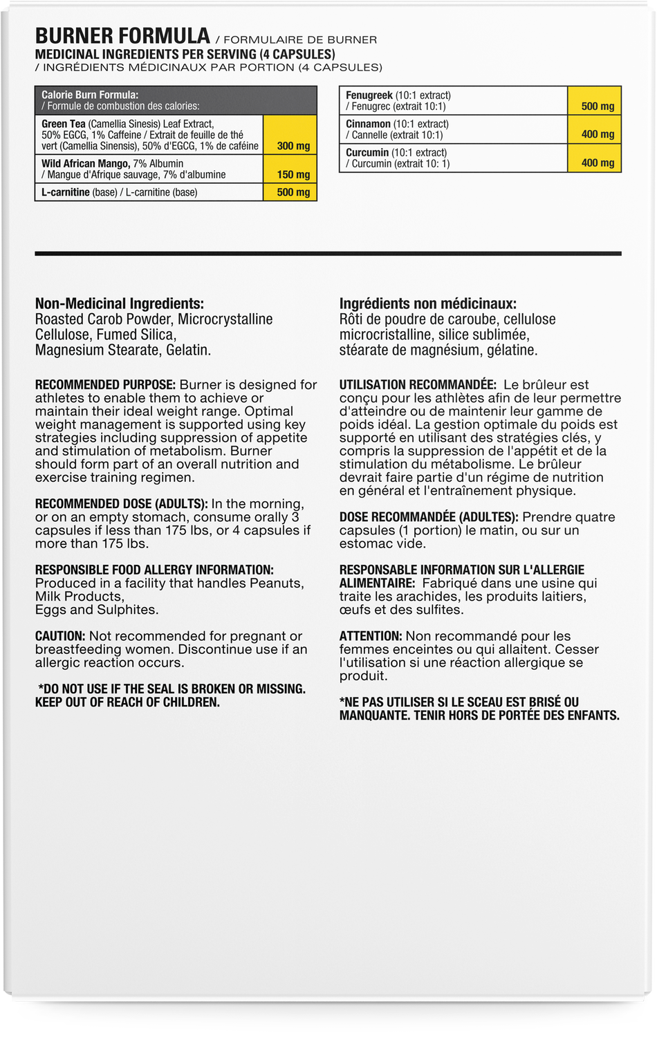 Burner is a stimulant free fat-loss supplement. It was designed to be complete, tacking all 3 pillars of fat loss: calorie expenditure, mobilization of fat and conversion of fat into energy. Because of its stim-free nature, Burner can also be stacked with other thermogenics for a synergistic effect. In addition to the great formula, each box contains Burner Blueprint, a guide to weight loss, complete with meal plan. Burner is Rich in antioxidants, Reduces Bodyfat, Increases and maintains lean mass, Increases insulin sensitivity, Regulates blood-glucose levels, Curbs appetite, Lowers DHT and increases free testosterone (in men), Reduces inflammation, and Reduces cholesterol.
