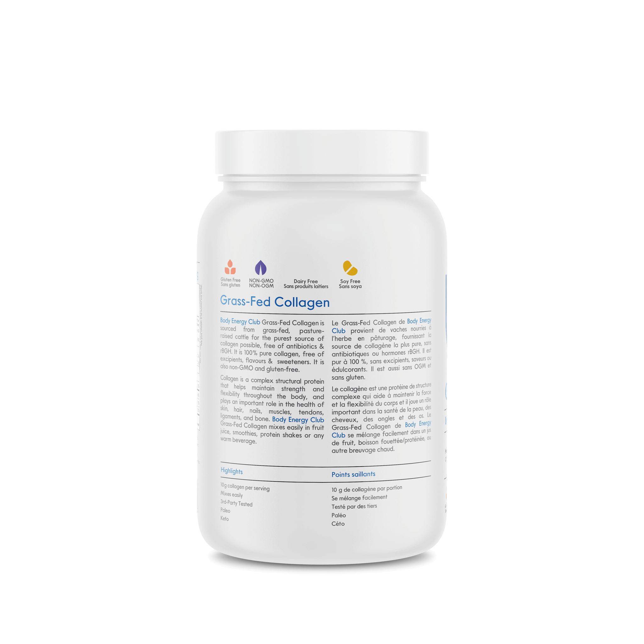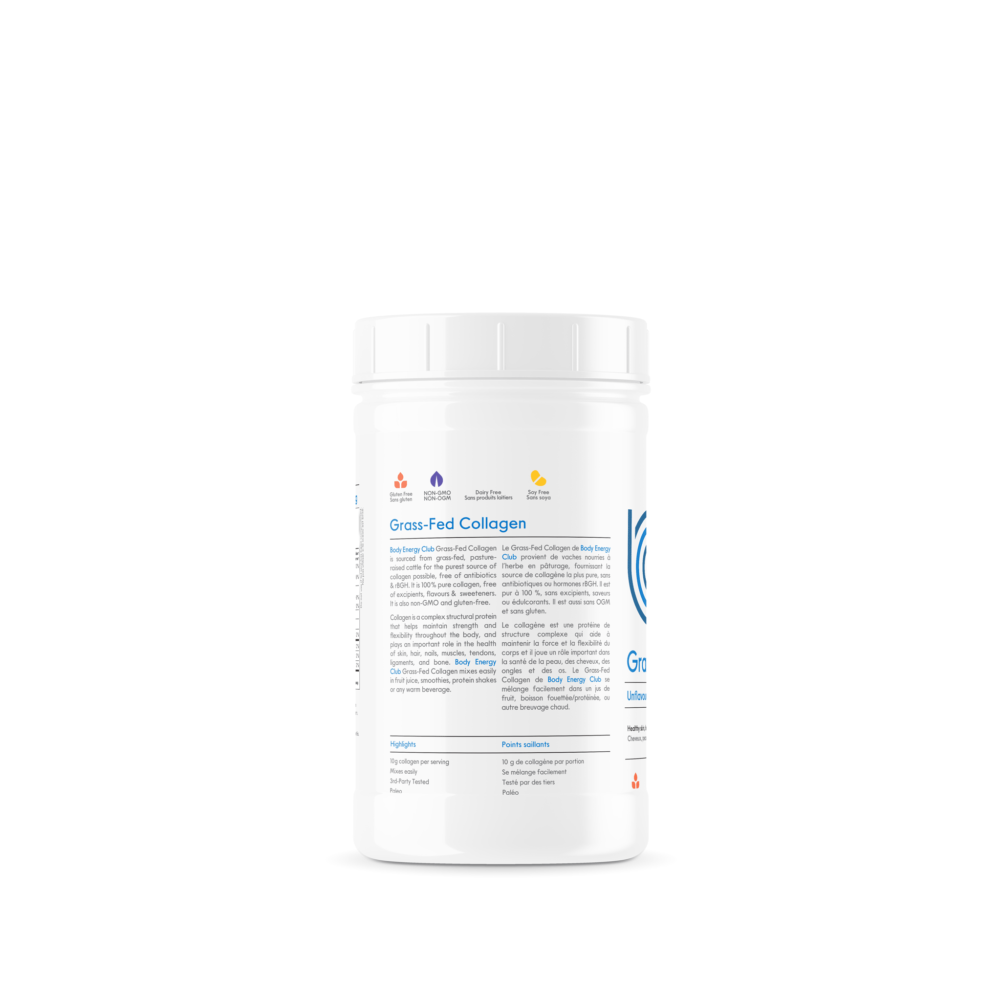 Collagen is a complex structural protein that helps maintain strength and flexibility throughout the body and plays a vital role in the health of skin, hair, nails, muscles, tendons, ligaments, blood vessels, digestive system and bones. As we grow older, the body's ability to form collagen decreases.  Body Energy Club Grass-Fed collagen mixes easily in any drinks hot or cold, food, smoothies or protein shakes.