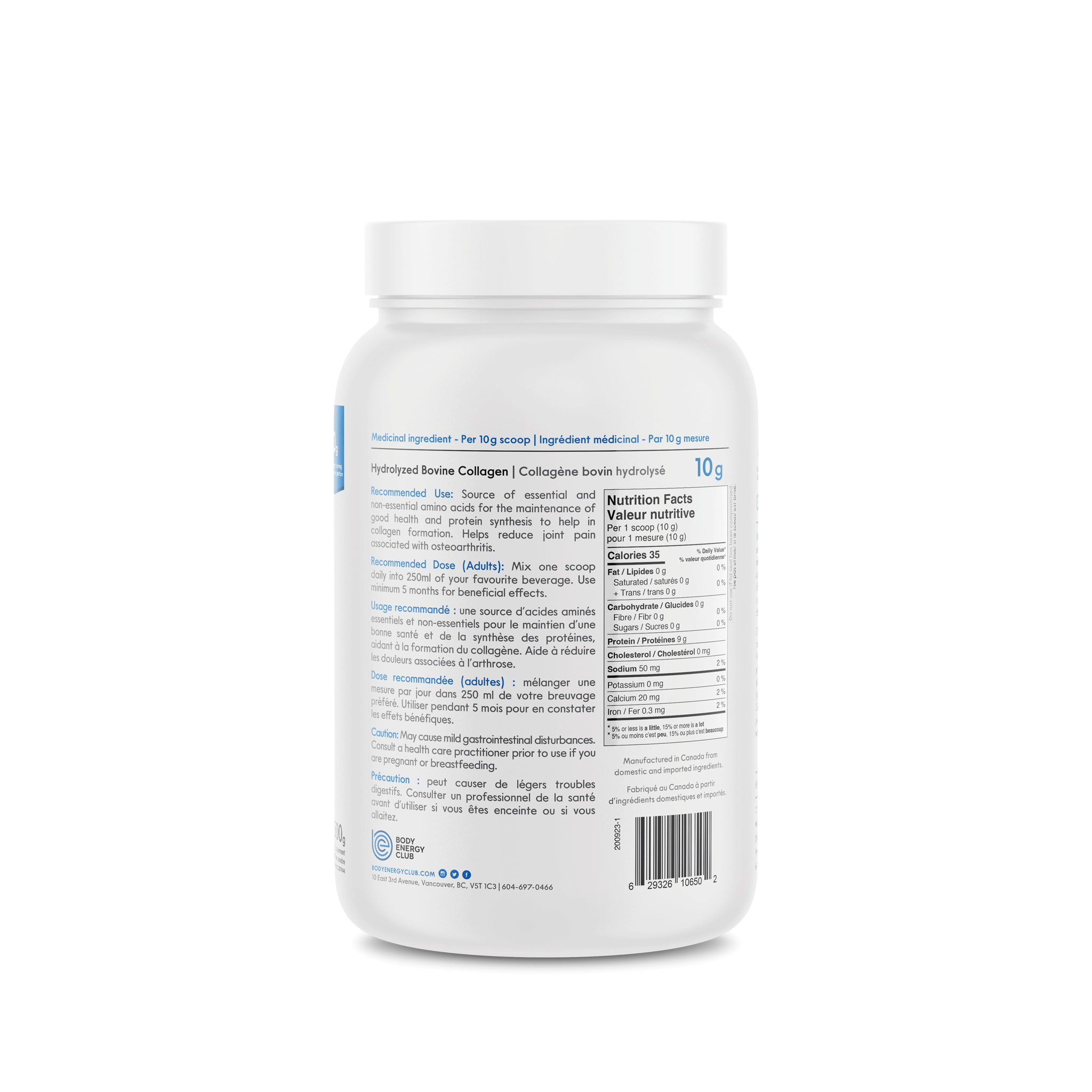 Body Energy Club Hydrolyzed bovine collagen peptides sourced from the hides of grass-fed cattle, to help restore and rebuild your body's natural collagen.*
