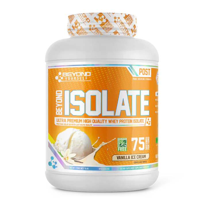 Beyond Yourself Isolate contains 26 grams of highly bio-available anti-biotic and hormone free whey protein isolate per serving*. It's also sweetened using Stevia leaf, an all natural sweetener*.