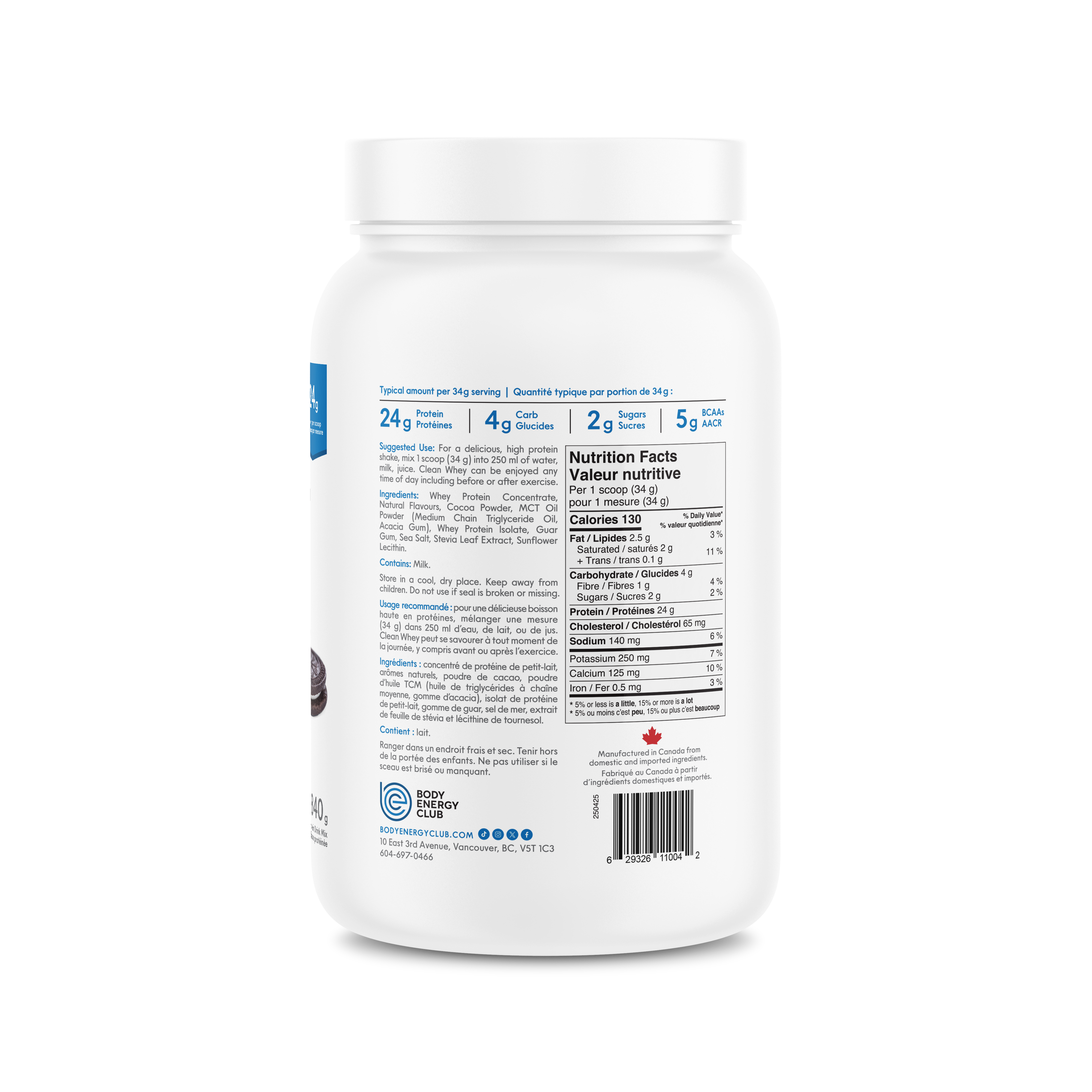 Body Energy Club Clean Whey is specifically designed for the most ingredient-conscious individual. It is an excellent source of dietary protein that may help build muscle and repair body tissue. The whey protein concentrate and whey protein isolate that we use are non-GMO, cold-processed, undenatured, and rich in branched-chain amino acids (BCAA). This mix is gluten-free, contains no added soy, is 3rd-party tested and manufactured in a GMP facility in Canada. But the good news doesn’t end there. Clean Whey provides approximately 5 grams of naturally occurring BCAAs per 32 gram serving, 24 grams of protein, and 2 grams of sugar. Body Energy Club Clean Whey tastes great, mixes easily, and makes a perfect high-protein snack or post- workout shake.