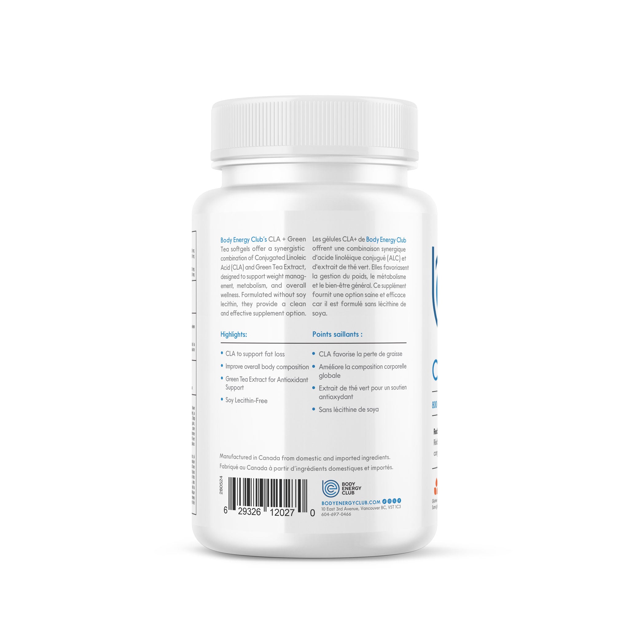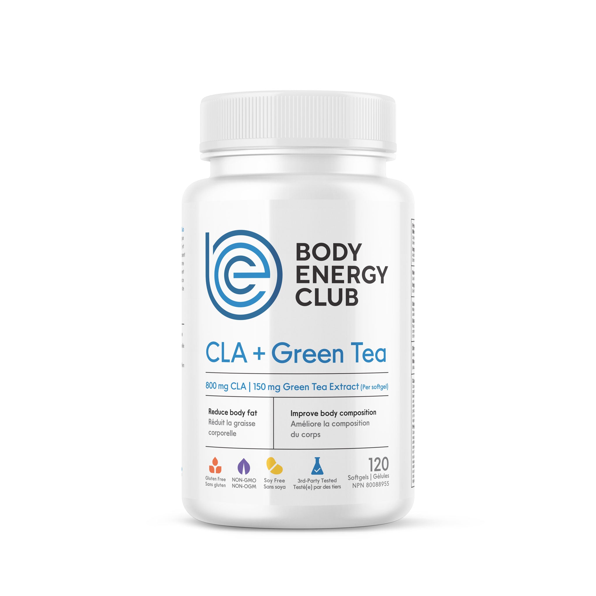 Body Energy Club CLA+ features Conjugated Linoleic Acid (80%) derived entirely from Safflower Oil, combined with a high EGCG Green Tea extract (50%)