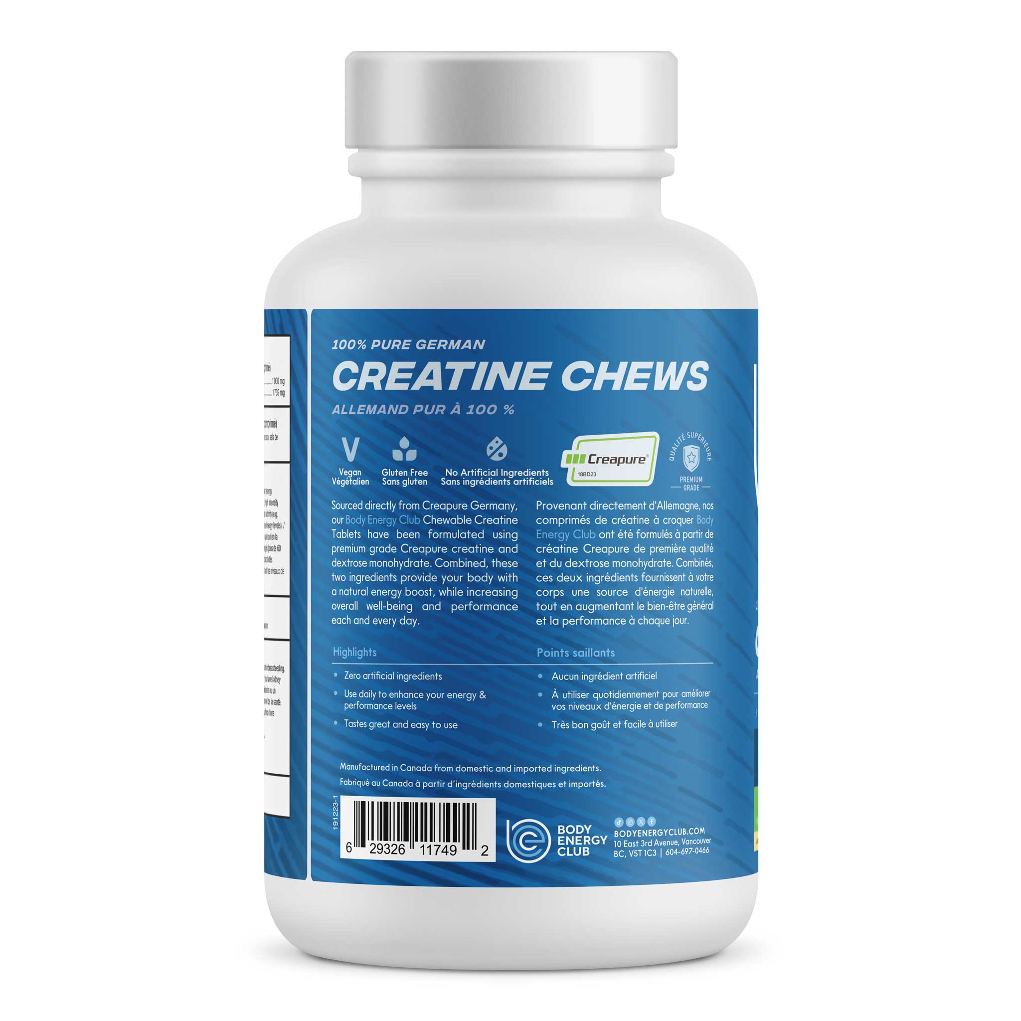 Introducing Body Energy Club's revolutionary Creatine Chews featuring Creapure® - the ultimate solution for those tired of cumbersome powders. Enhanced with Glucose for optimal absorption, our Creatine Monohydrate Chewable tablets offer superior and more effective delivery of creatine to your body.