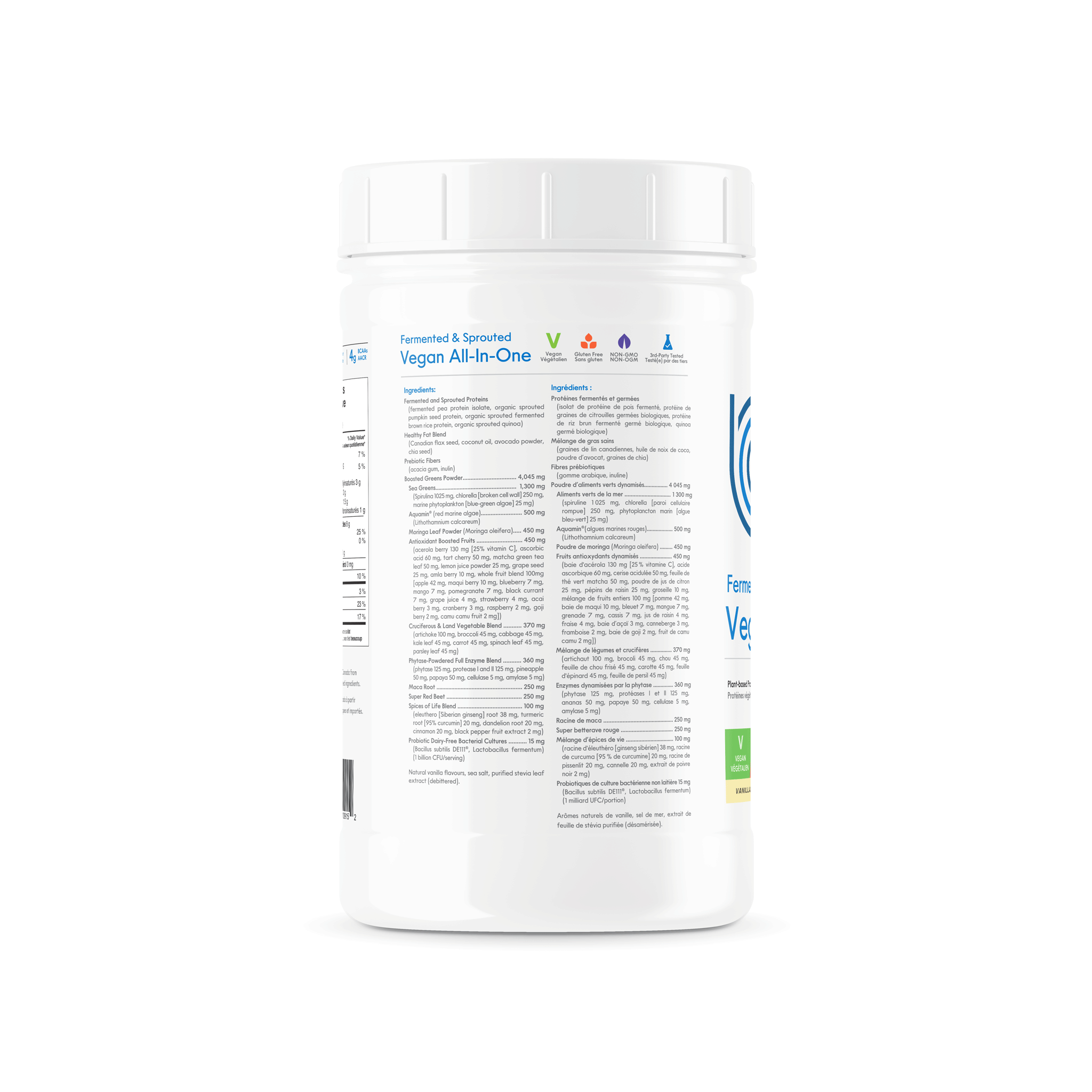 Body Energy Club Vegan Fermented and Sprouted All-In-One protein is a next-level "all in one shake"* that provides a potent raw whole food blend of 39 greens, veggies, fruits, antioxidants, prebiotics, probiotics, and omega-3 essential fatty acids.
