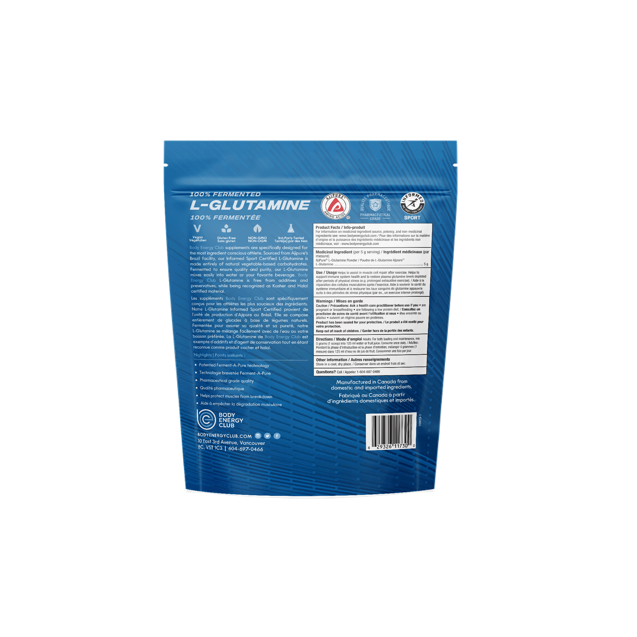 Body Energy Club's L-Glutamine is sourced from Ajipure, the industry leader in fermentation technology. BEC L-Glutamine is made entirely from natural vegetable-based carbohydrates, yielding unsurpassed quality and purity. It is simple to use and mixes easily into any beverage with. a spoon or shaker cup. It is completely free of artificial flavours, colours, sweeteners, preservatives and dyes.