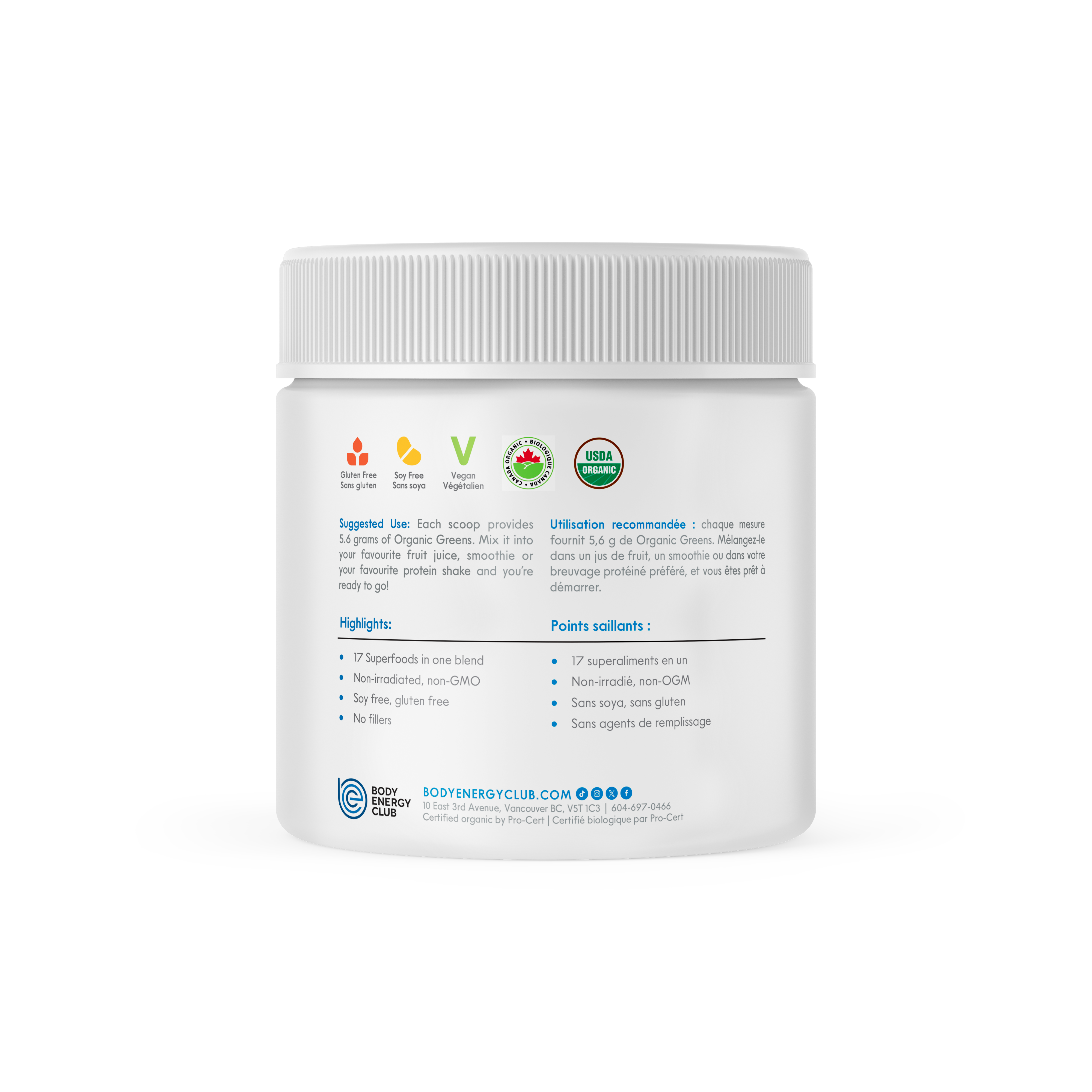 Body Energy Club Organic Greens is a quick and convenient way to get your daily nutrients. Loaded with vitamins, minerals, antioxidants, phytonutrients and probiotics.