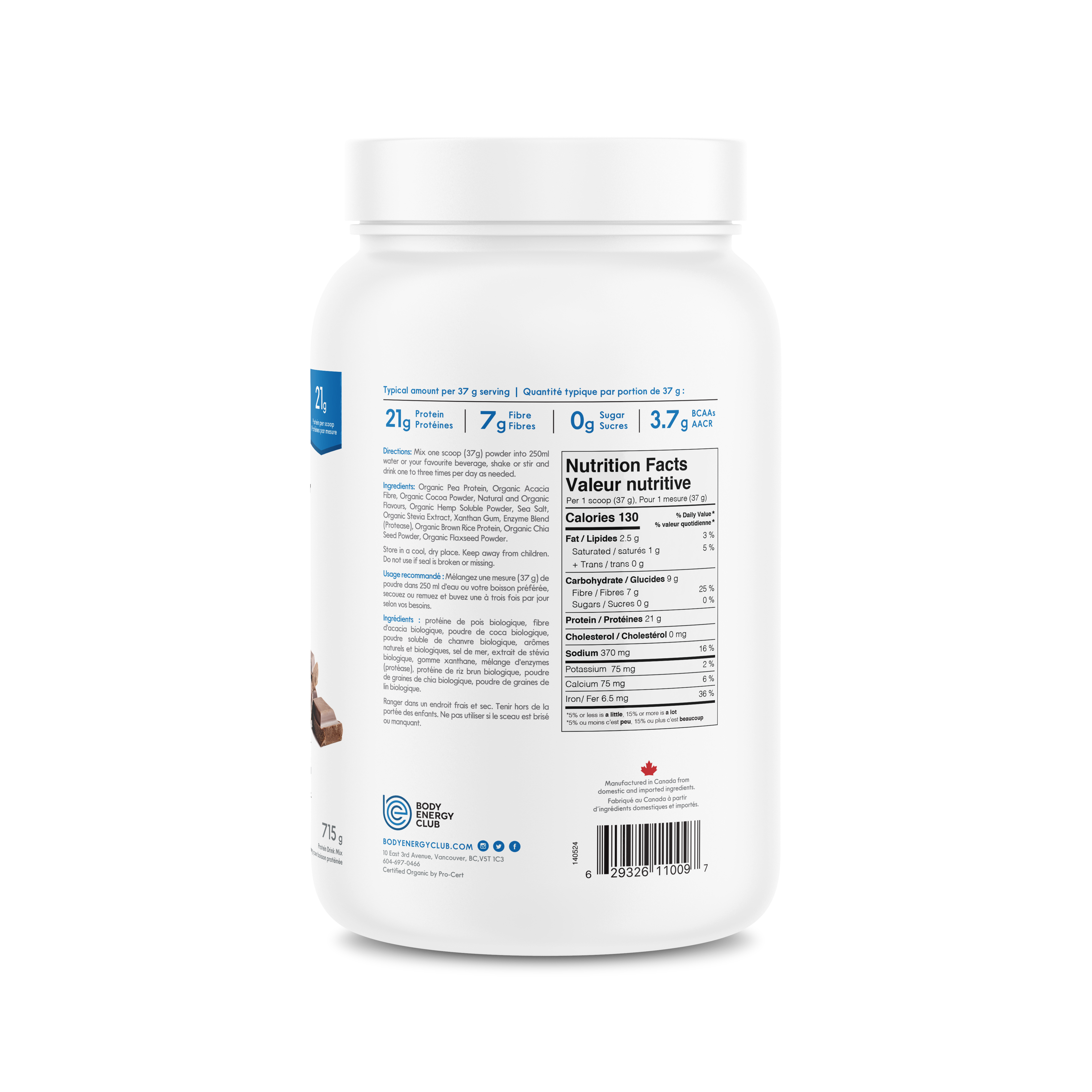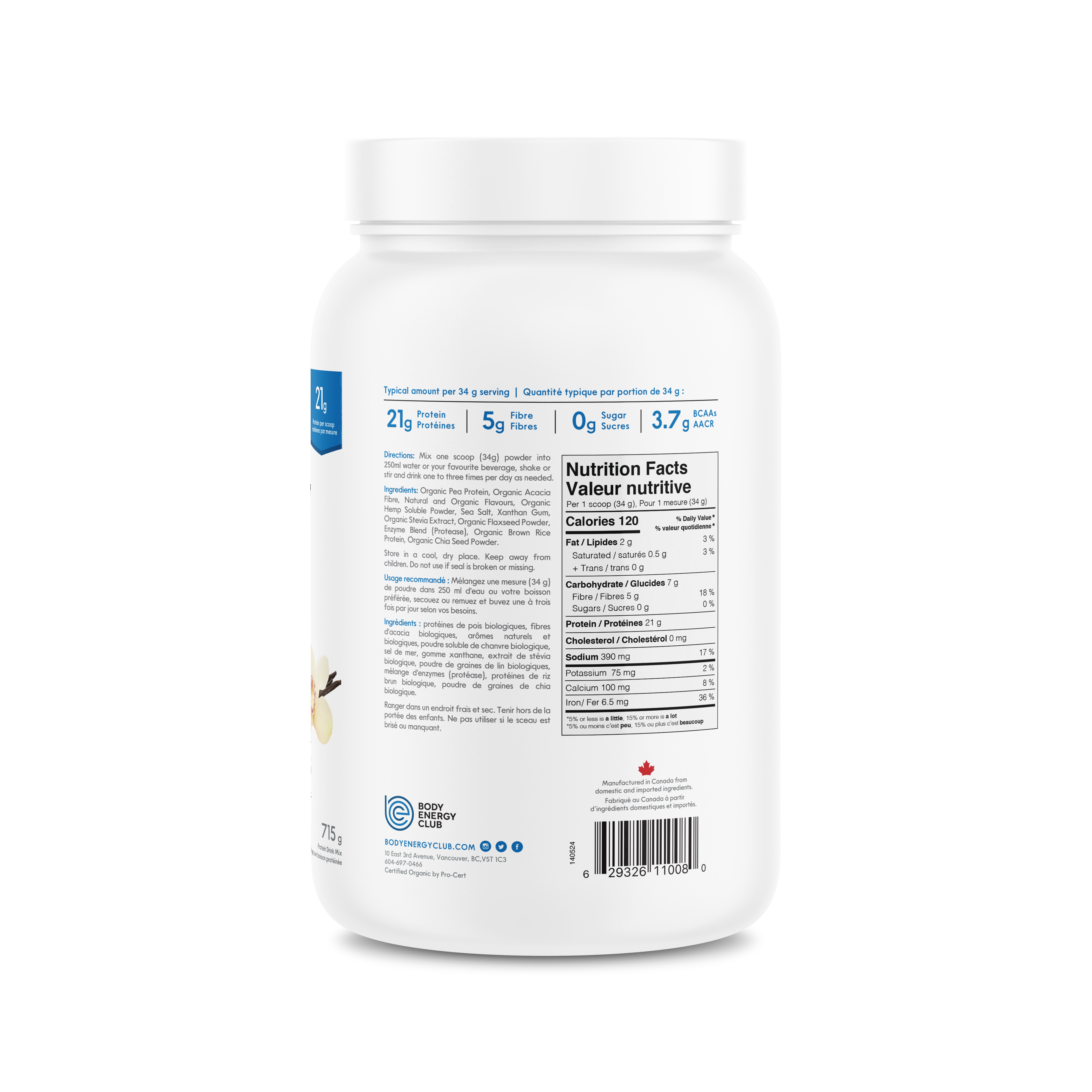 Refuel, repair, and recover with Body Energy Club Organic Plant Protein—an organic, plant-based blend crafted from U.S.-grown peas, garbanzo beans, navy beans, lentils, and cranberry seed protein. Each serving delivers 21g of complete protein with all essential amino acids, plus BCAAs to help reduce recovery time—naturally sourced from organic ingredients.