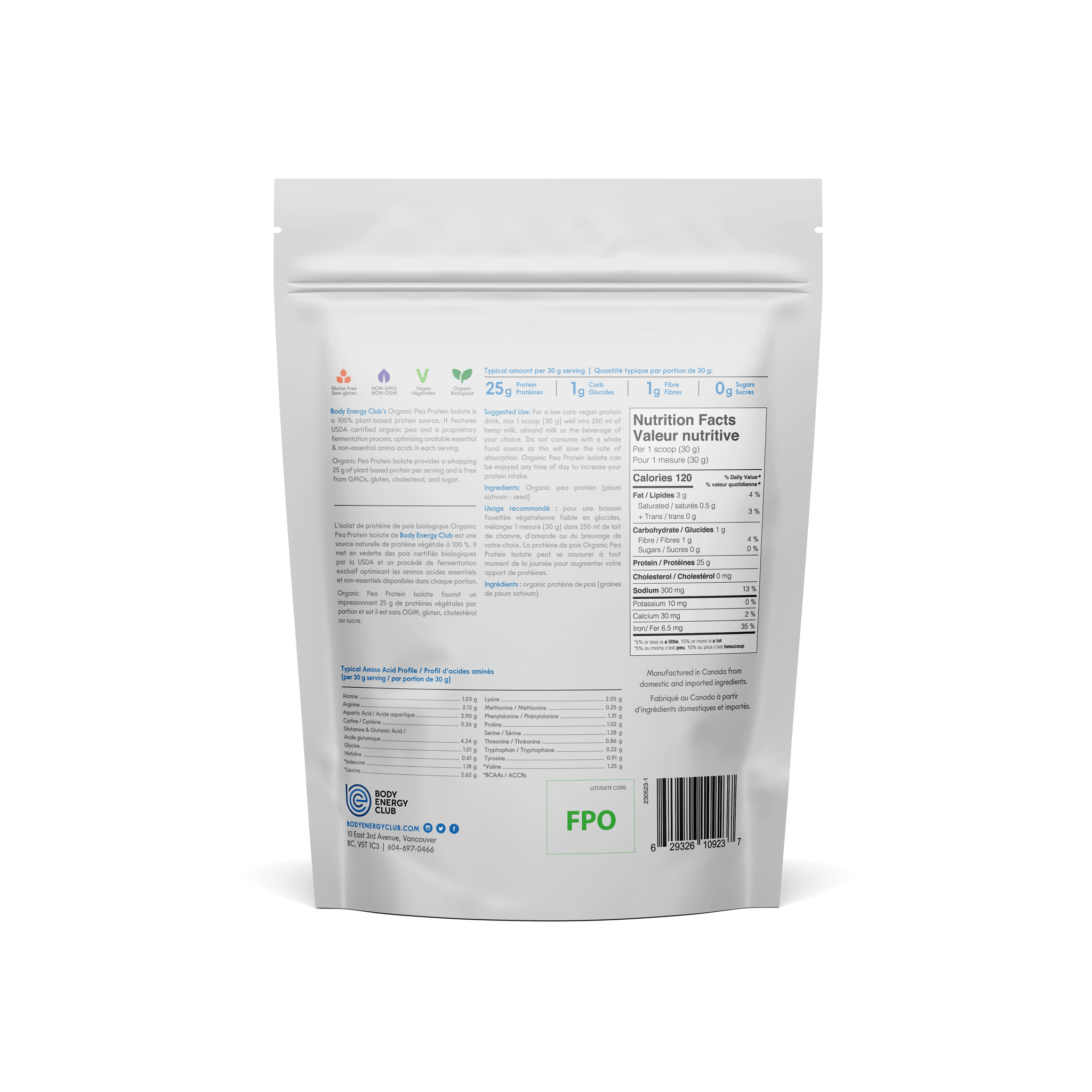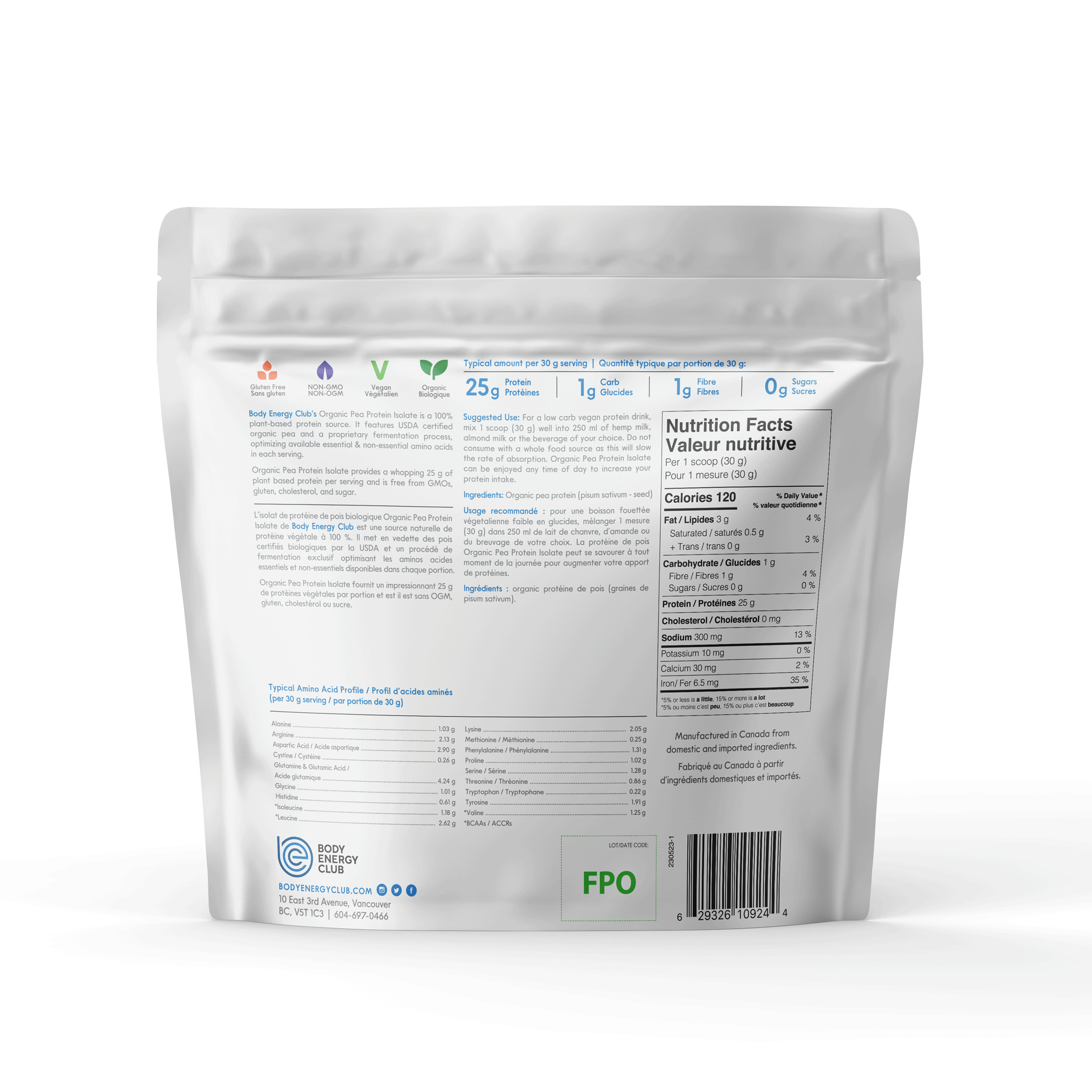 Body Energy Club Pea Protein is a 100% natural organic vegetable protein source. It is free from dairy, gluten, lactose, cholesterol and sugar.