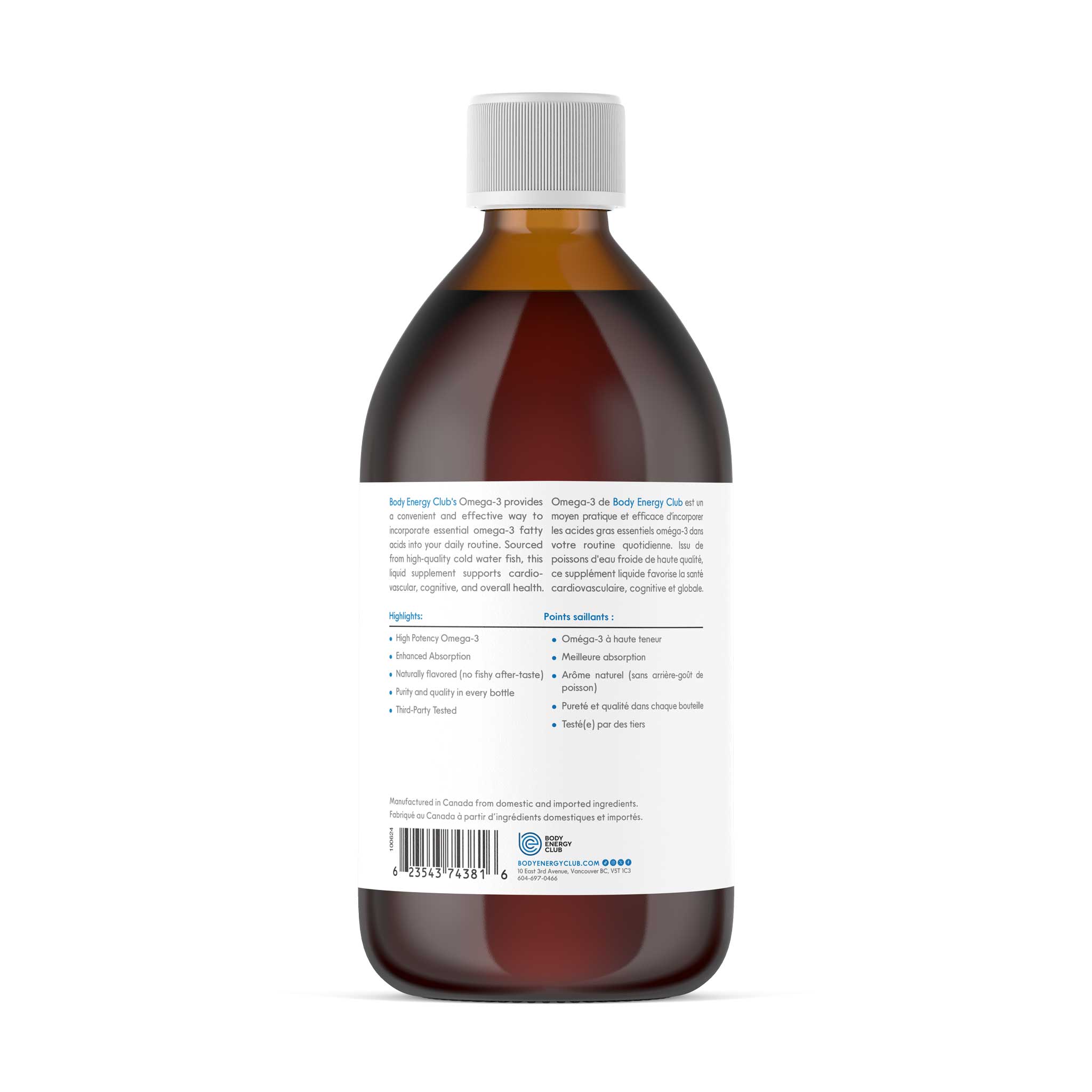 Omega-3 from Body Energy Club provides 4617.5 mg of Omega-3 essential fatty acids per teaspoon. Omega-3 supplies high levels of EPA and DHA. Omega 3 also provides 800mg of EPA and 500mg of DHA in a delicious lemon flavour.