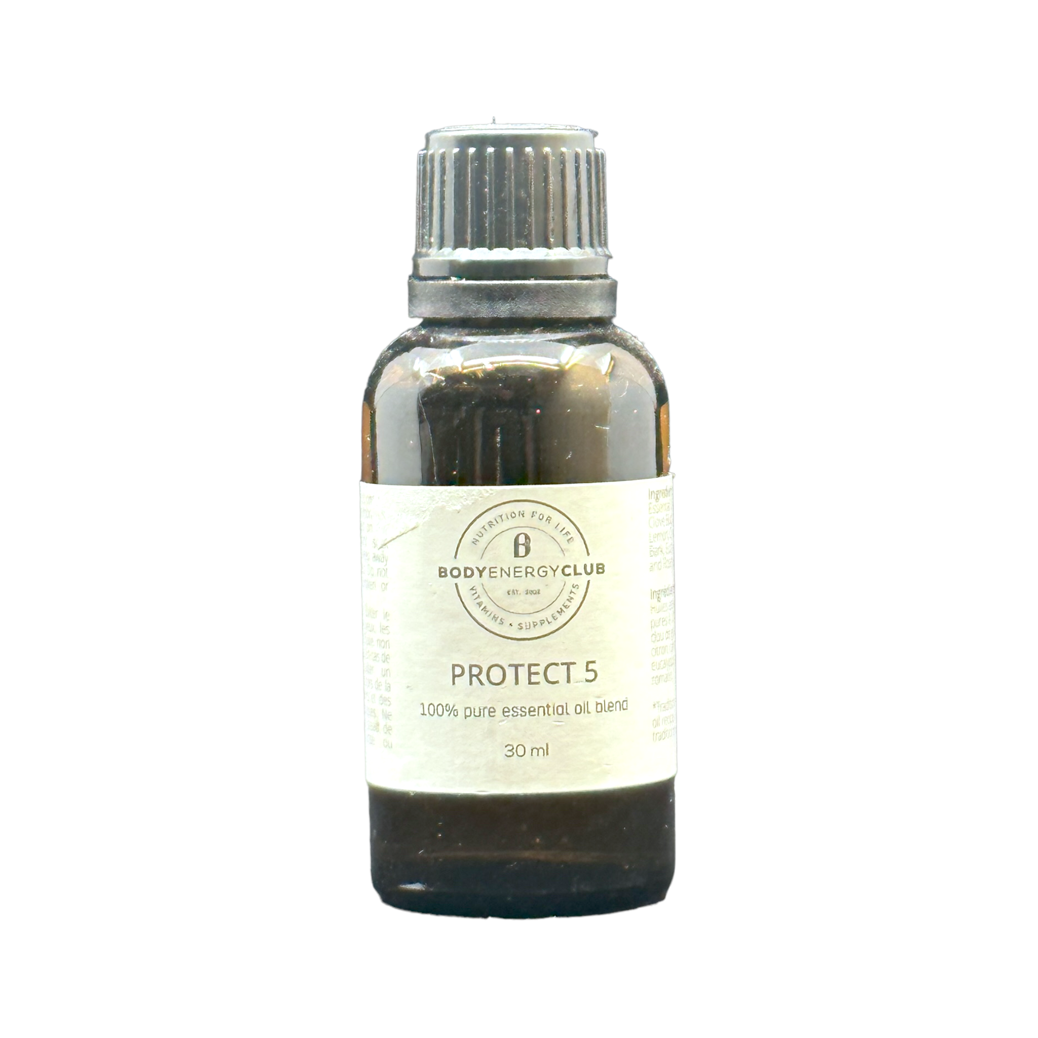 Body Energy Club's Protect 5 Essential Oil is a carefully crafted blend of five essential oils Clove bud, Lemon, Cinnamon bark, Rosemary and Eucalyptus.