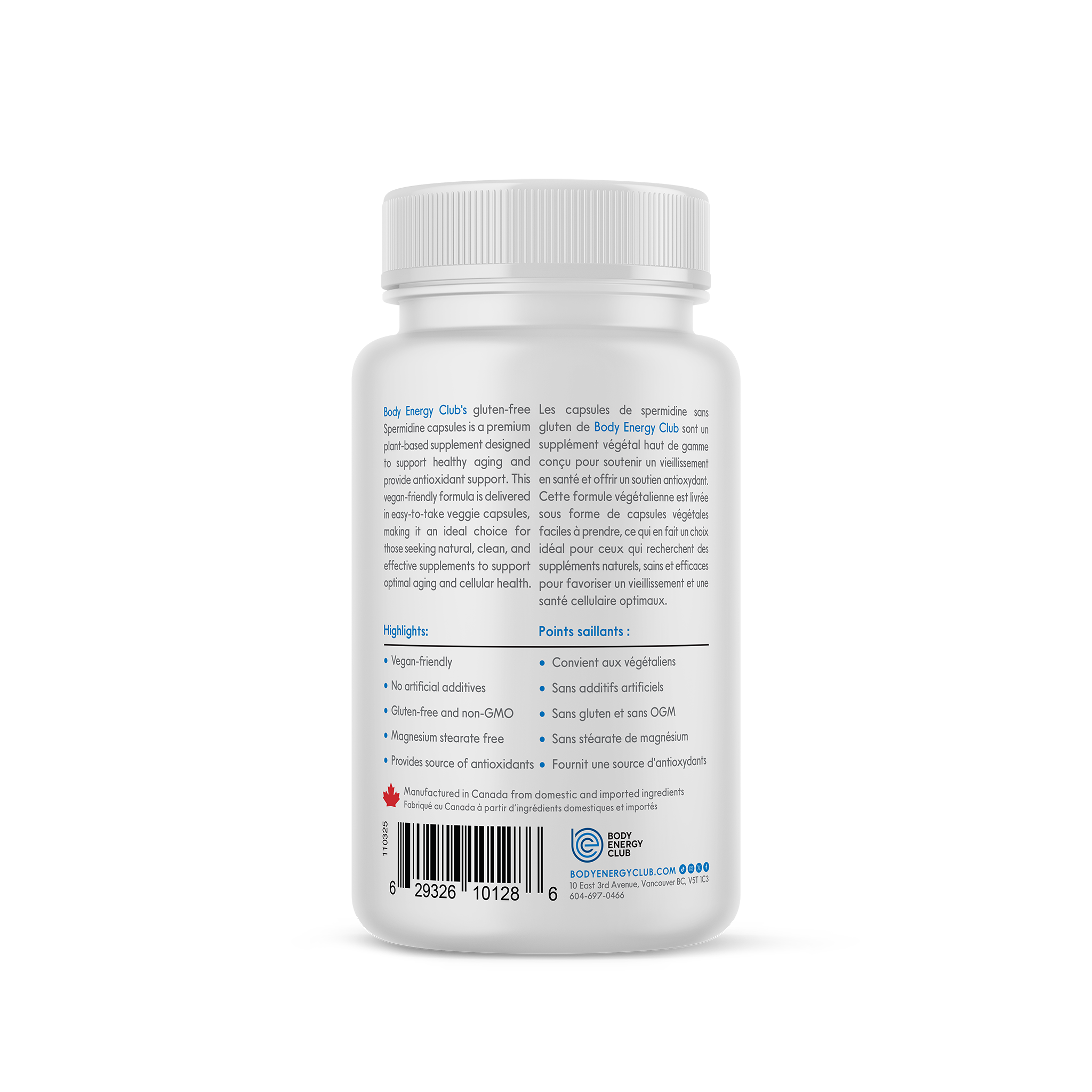 Support your body’s natural renewal with Body Energy Club Spermidine, powered by Primeadine® Original. This premium, plant-derived formula is sourced from concentrated, defatted Japanese wheat germ extract, delivering 1mg of bioavailable spermidine per dose alongside FOS prebiotic fiber to help boost your body’s natural production.