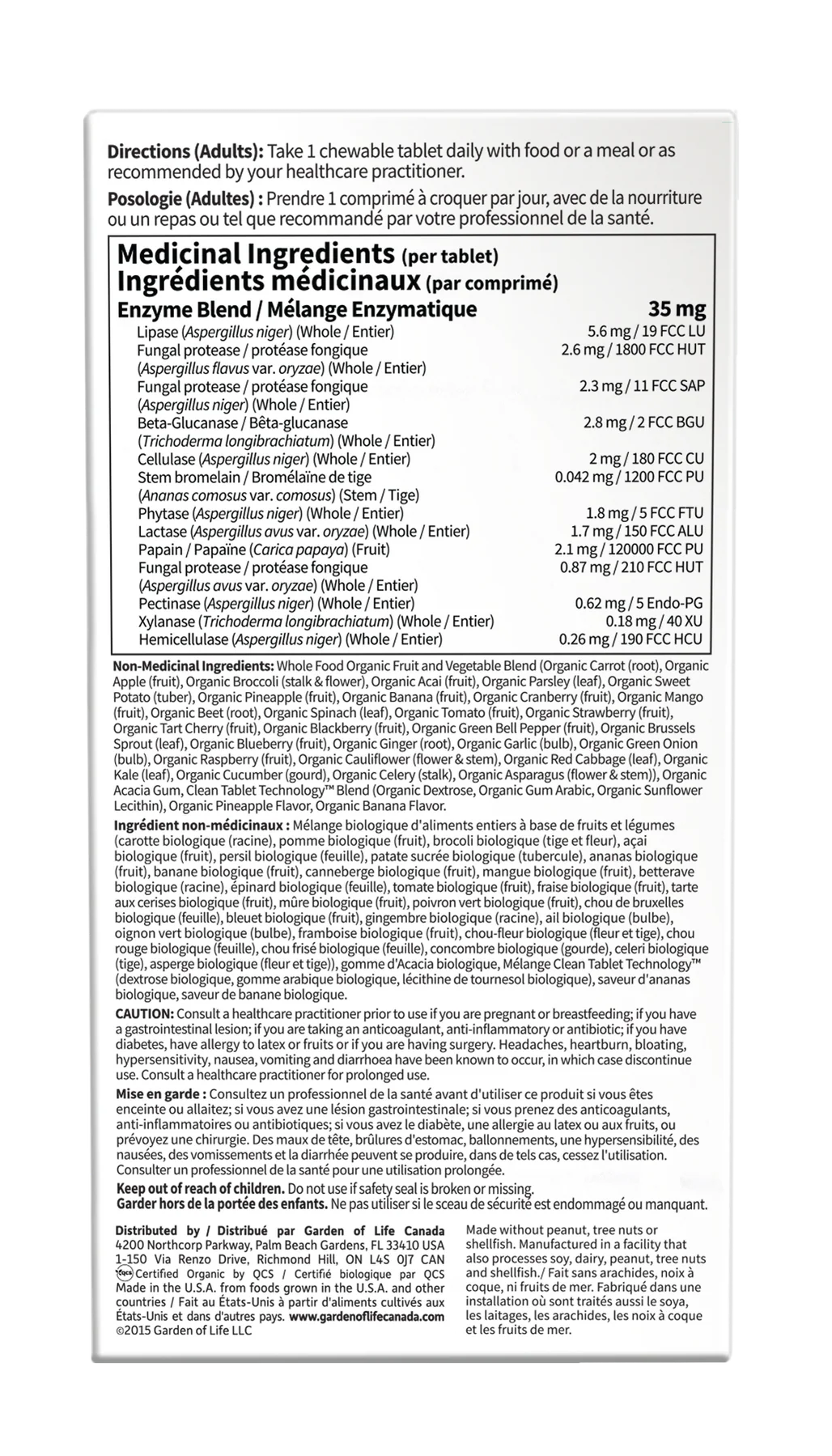 Each delicious chewable tablet features a whole food organic fruit and vegetable blend, delivering the goodness of 29 powdered Certified Organic plants. To power your digestion, it provides 13 key digestive enzymes, including a potent 120,000 FCC PU from papain, plus organic acacia fiber for added digestive support.