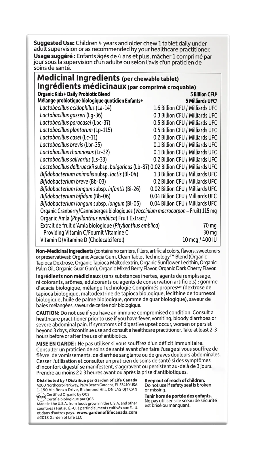 Organic Kids+—a unique Certified USDA, Non-GMO Project Verified Organic yummy chewable probiotic especially for kids to offer immune system and digestive support.*