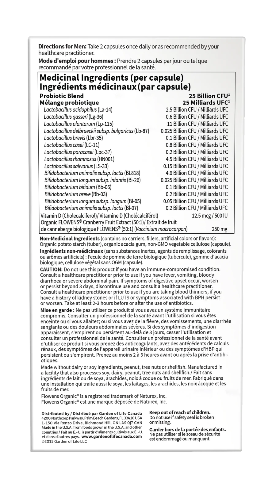Garden Of Life Dr. Formulated Probiotics Prostate is a a unique refrigerated probiotic formula combined with clinically studied Organic Flowens Cranberry. Just 2 capsules a day support men's lower urinary tract and prostate health.
