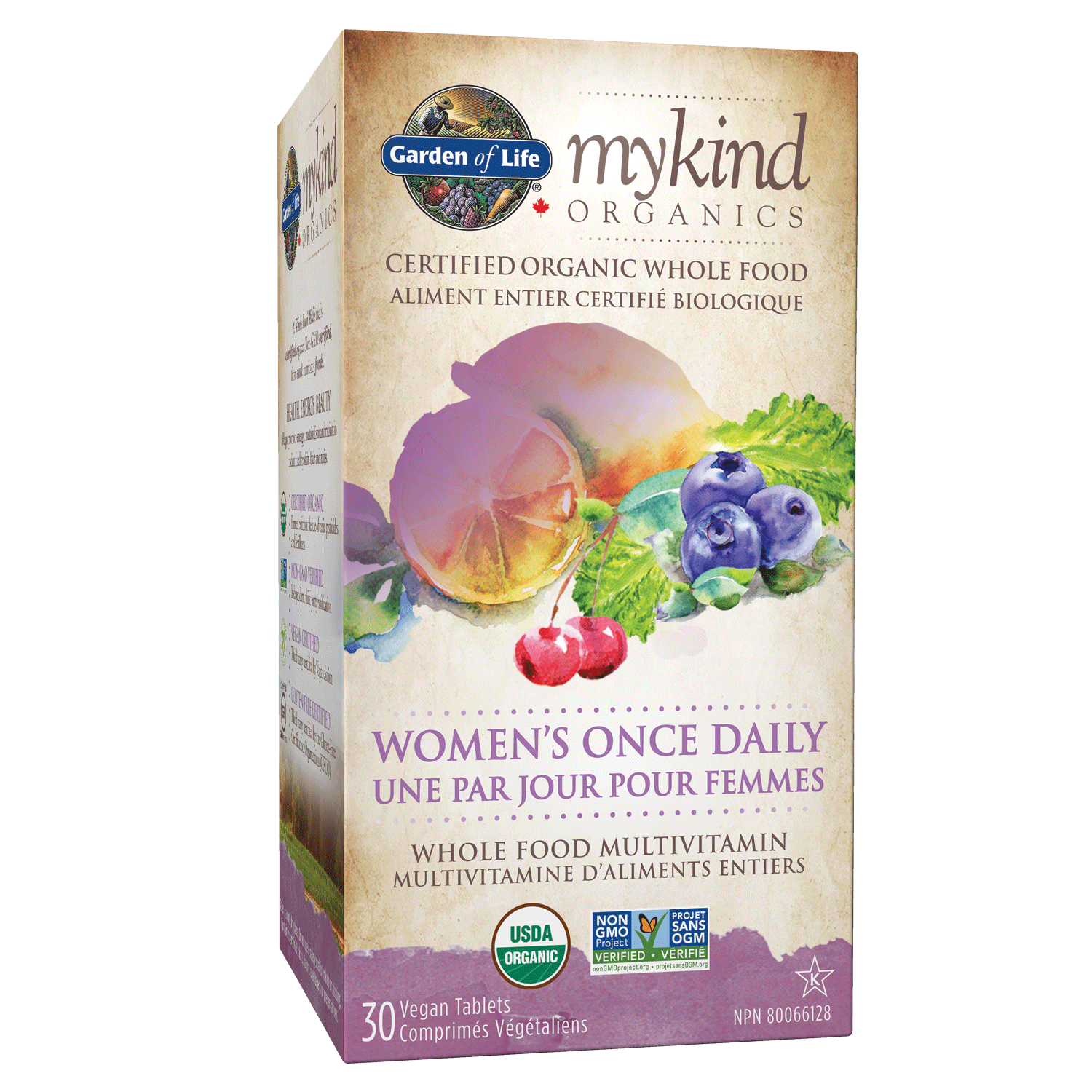 Mykind Organics Women's Once Daily—a Certified USDA Organic, Non-GMO Project Verified women’s multivitamin once-daily formula made from certified organic whole foods, for women's health, energy and beauty.