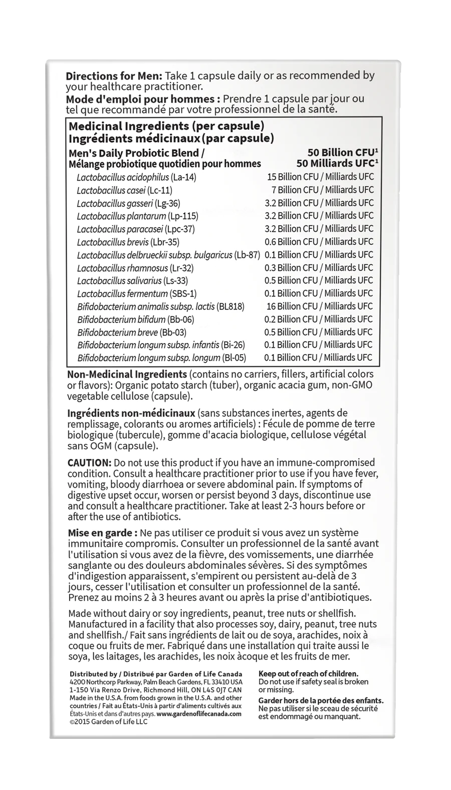 Garden Of Life Once Daily Men's 50 Billion is a unique formula created by Dr. Perlmutter exclusively for men, with a high potency count of beneficial probiotics made from diverse strains, including Lactobacilli and Bifidobacteria, that are resistant to stomach acid and bile, to support colon health and support immune digestive system health*. Each capsule has a powerful 50 billion CFU tailored to support men's daily gastrointestinal health.