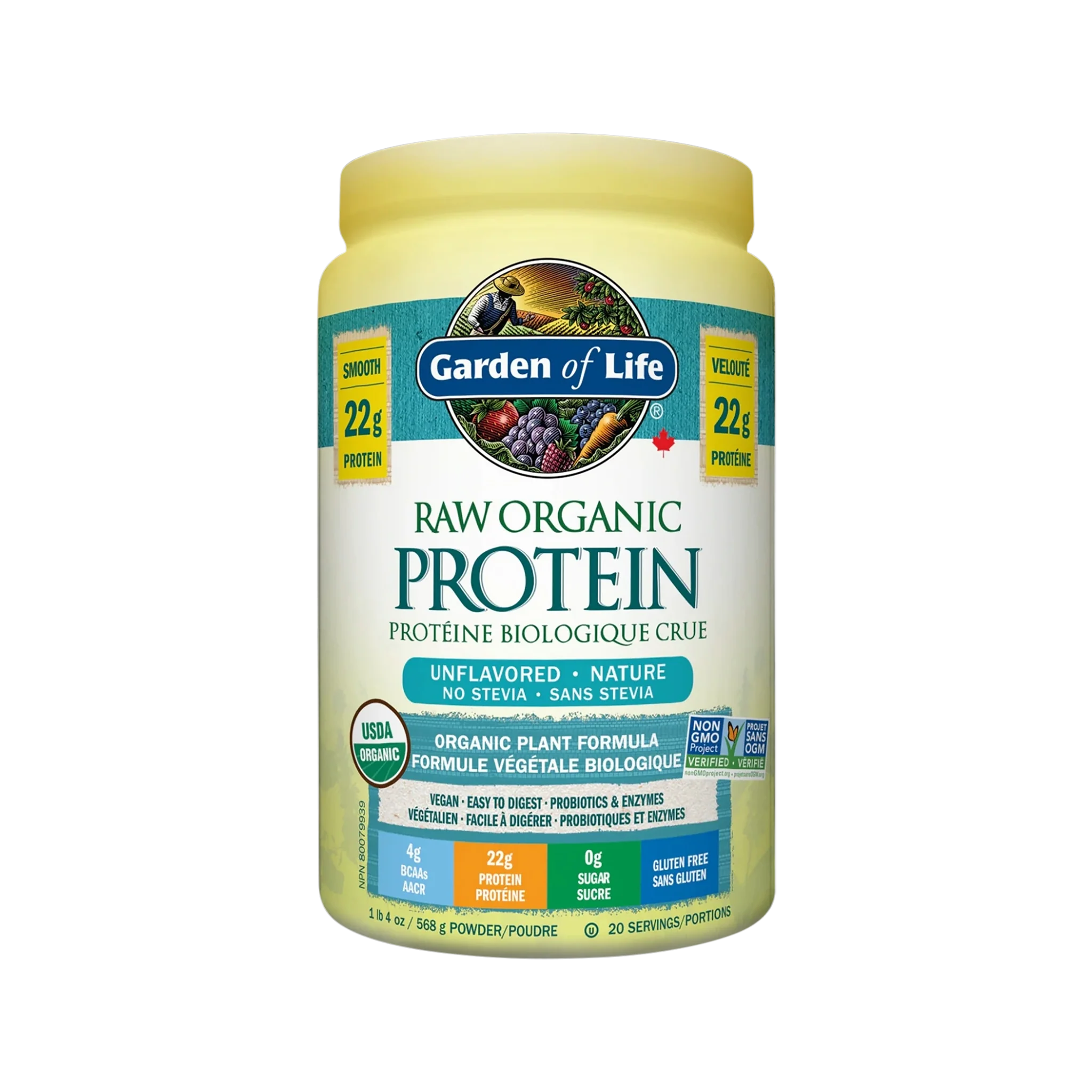 Unleash the nutritive power of living grains and seeds with Garden of Life Raw Organic Protein—a certified organic, raw, vegan protein powder with a scrumptious taste. Featuring 22 raw and organic sprouts, Raw Organic Protein provides 22g of protein and includes all essential amino acids. Raw Organic Protein contains RAW Food-Created fat-soluble vitamins A, D, E and K and supports intestinal health with live probiotics all while helping digest proteins with its enzymes.* Raw matters because heat can denature proteins, reducing their availability to your body. But Garden of Life's Certified Organic plant proteins are different—always gently produced at low temperatures, without any added fillers or carriers, preserving their complete amino acid integrity and whole-food, Certified Organic, Non-GMO goodness.