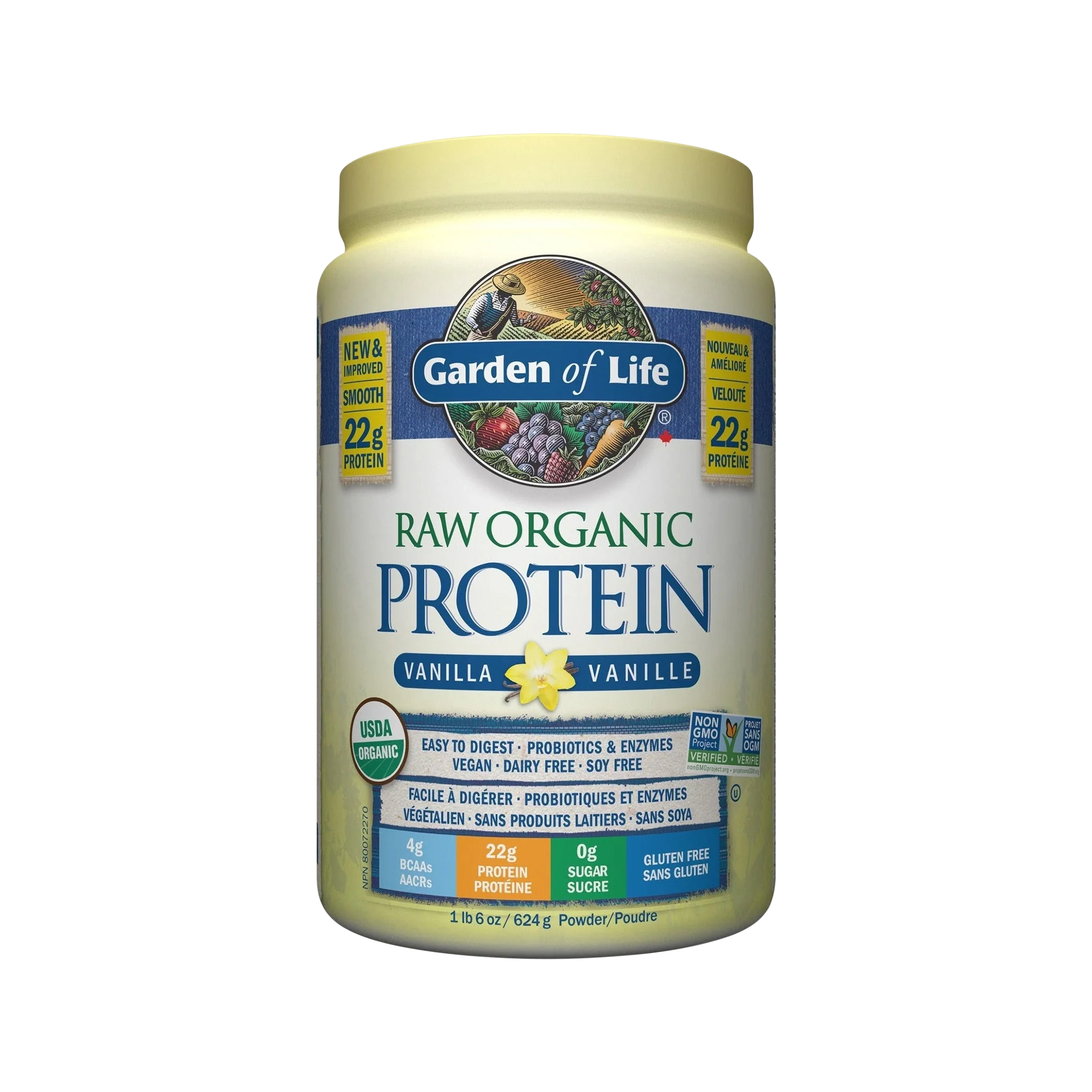 Garden of Life Raw Organic Protein is a Certified Organic, Non-GMO Project Verified raw vegan protein powder made with 13 raw sprouted proteins delivering 22g of protein with a complete profile of all the essential amino acids along with added fat-soluble vitamins, probiotics and enzymes.