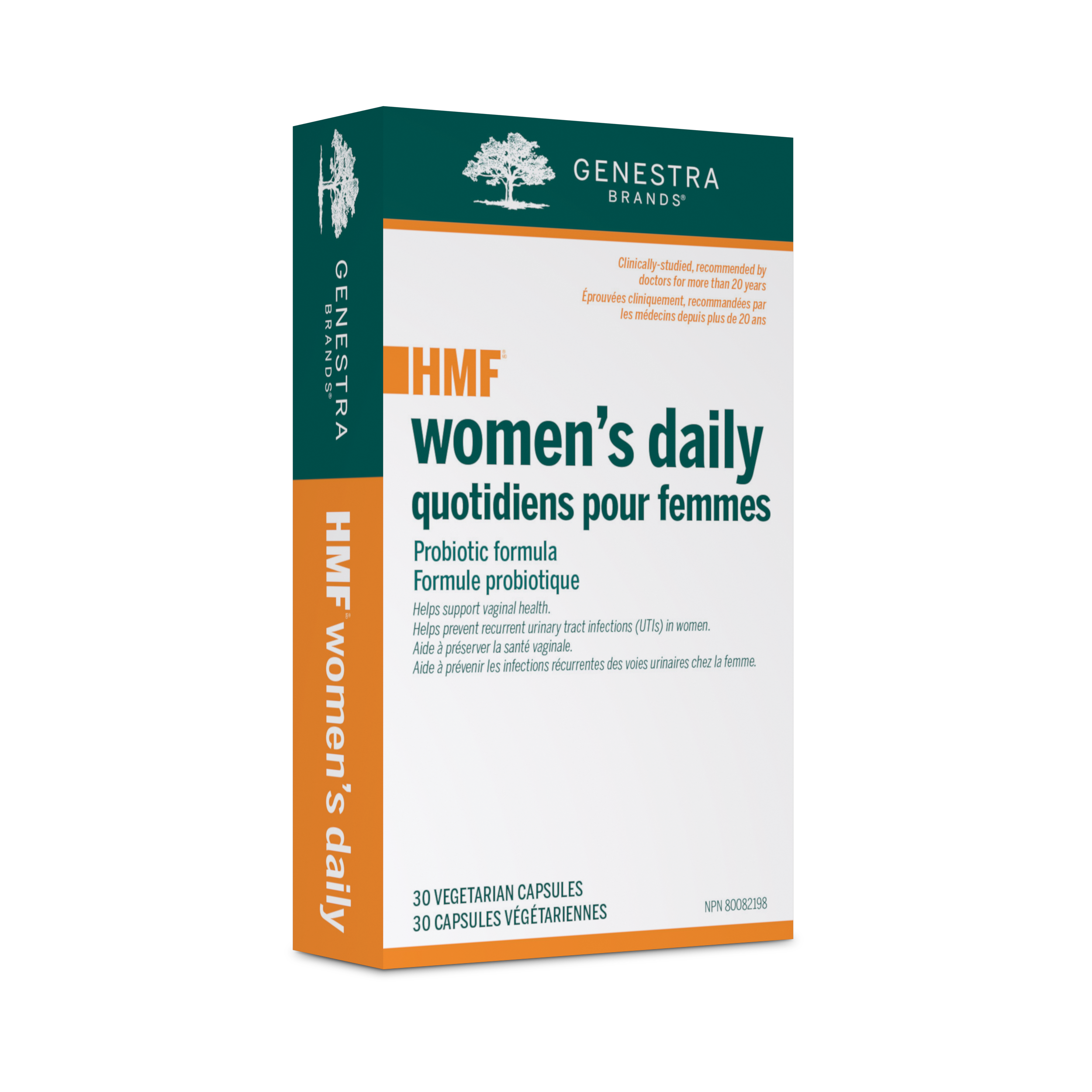 HMF Women's Daily was specifically designed to support the unique needs of women. Each capsule offers 17.6 billion CFU from a combination of seven research-driven probiotic strains to help restore and maintain healthy vaginal flora. The vagina is a complex ecosystem that can by altered by many factors, including age, medication use, sexual activity, hygiene practices and hormone production.1 Lactobacilli are the dominant vaginal microorganisms in healthy women, where they help maintain the normal vaginal microflora.1 They compete with other microorganisms for nutrients and adherence to the vaginal epithelium; decrease the vaginal pH by producing organic acids (primarily lactic acid); and produce antimicrobial compounds, including bacteriocins and hydrogen peroxide.1 In addition to providing two species of Bifidobacteria, HMF Women's Daily offers three species of Lactobacilli, selected for their natural presence in the female flora.2-5 Included in this blend are L. rhamnosus HN001 and L. acidophilus La-14, which provide particular support to maintain healthy vaginal flora.2-4 This probiotic combination also helps colonize both the large and small intestines to support gastrointestinal health. To further contribute to overall well-being, HMF Women's Daily offers cranberry fruit extract, which helps prevent recurrent UTIs in women.