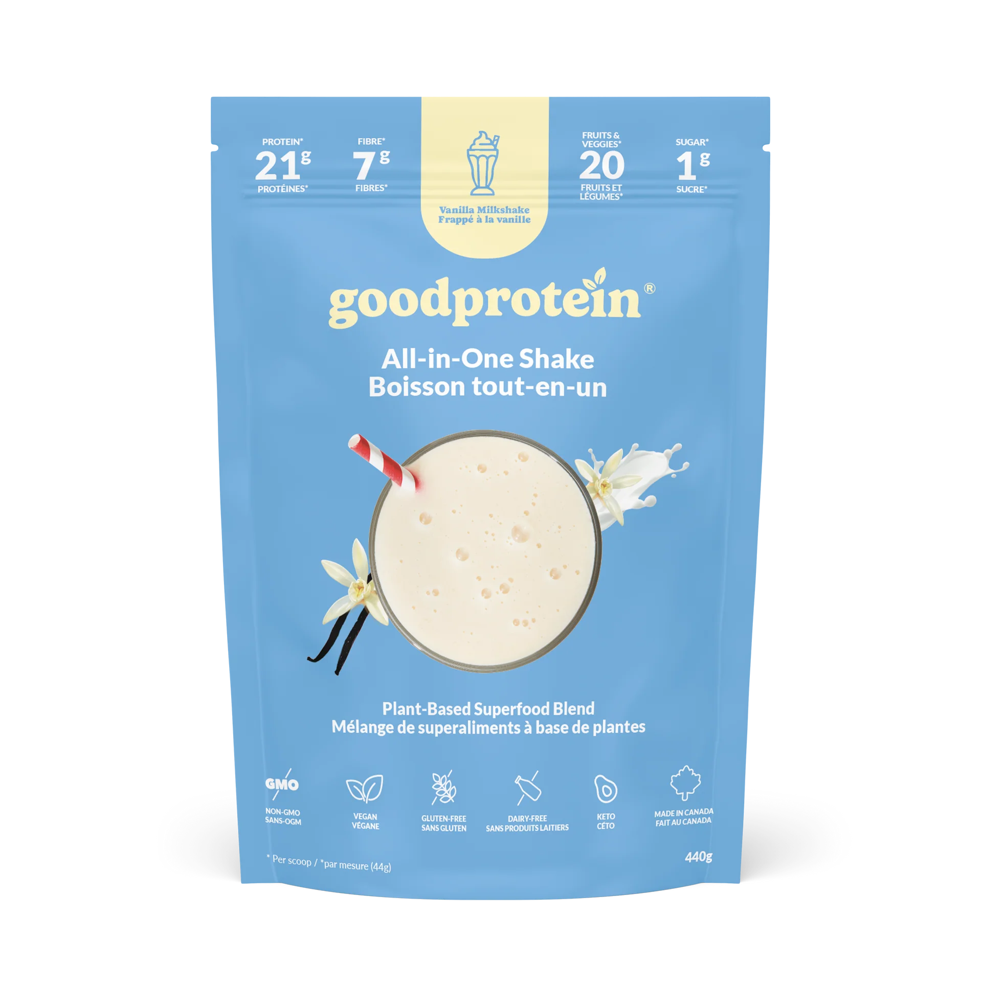 GOODPROTEIN AIO Shake is a premium, all-in-one protein shake designed to fuel your body with high-quality protein, vitamins, minerals, and essential nutrients. With a smooth and creamy vanilla milk taste, this shake is perfect for post-workout recovery, meal replacement, or daily nutrition support. Made with clean ingredients, it provides balanced macronutrients to help support muscle growth, energy levels, and overall wellness.