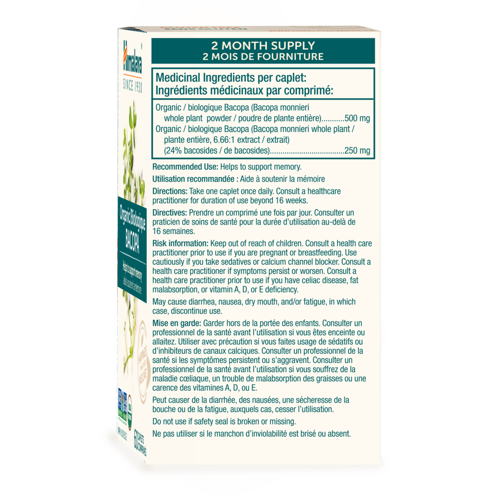 • Organic Bacopa extract supports mental alertness and empowers your clarity of thought