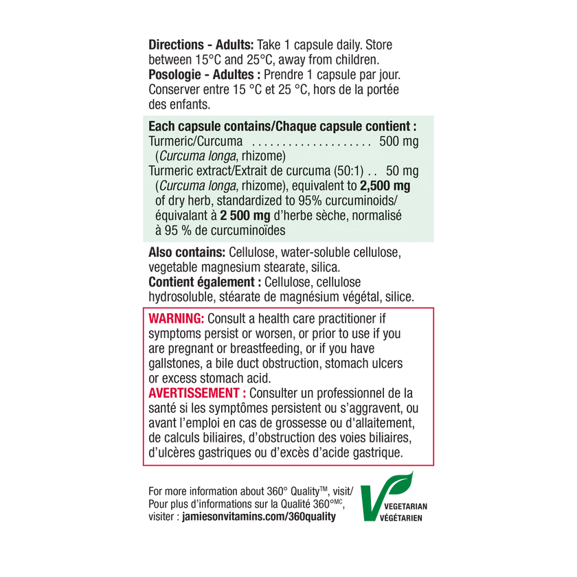 Jamieson Curcumin Turmeric provides ultra-strength joint pain relief by naturally reducing inflammation and supporting overall wellness.* This powerful herbal formula offers antioxidant protection, aids digestion, and helps maintain liver health.*