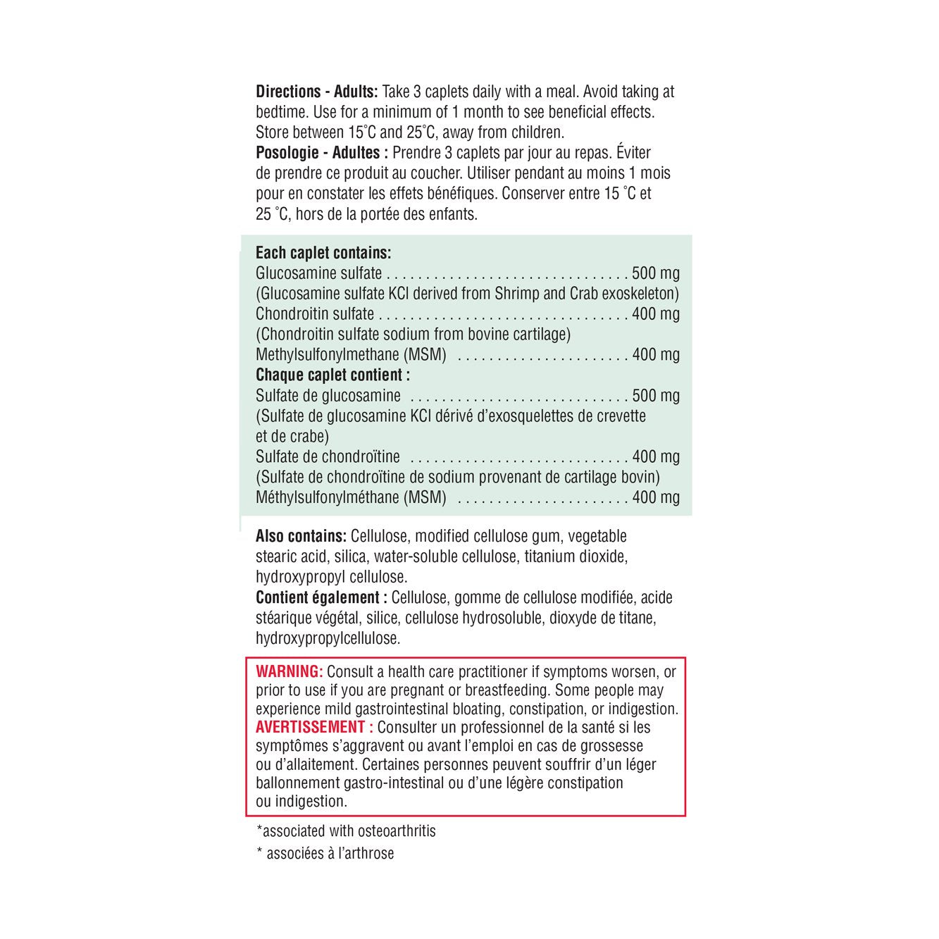 Jamieson Glucosamine Chondroitin MSM 1,300 mg is a high-potency formula that combines three well known, natural compounds to help maintain healthy joints and cartilage, while relieving joint pain associated with osteoarthritis.