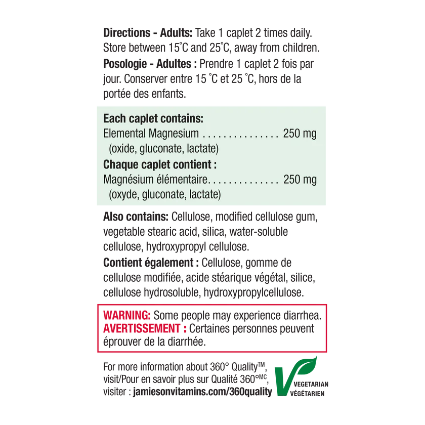 Jamieson Magnesium 250 mg provides a natural complex of three magnesium sources. It is easily absorbable and provides extra strength, helping in bone development and maintenance as well as muscle function*.