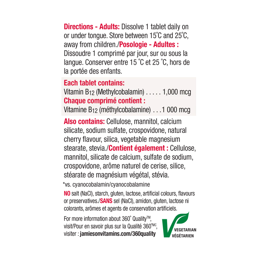 Jamieson | Vitamin B12 1000mcg Methylcobalamin Sub Tabs