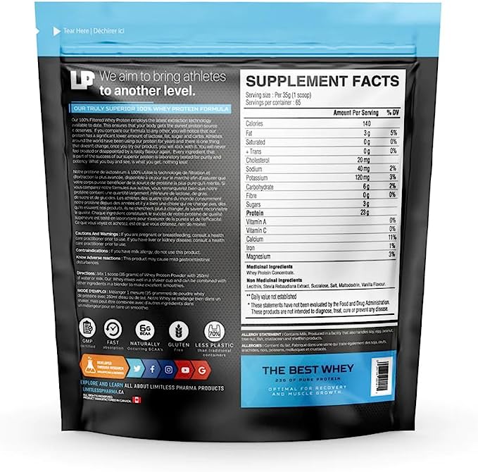 Limitless Pharma Whey Concentrate Protein is the premium standard protein powder made with 100% pure and natural whey concentrate.