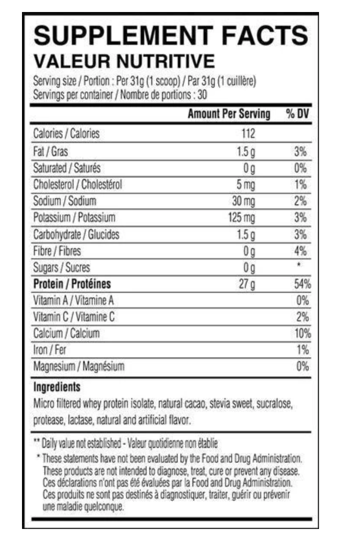 Limitless Pharma Whey Isolate contains 27g of whey protein and 112 calories per scoop. It's free of lactose, fats and cholesterol and low in carbohydrates.