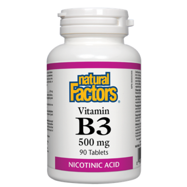 Natural Factors Vitamin B3 offers 500 mg of vitamin B3 as nicotinic acid per serving. It is a co-factor for enzymes that are vital to energy production and it helps the body convert carbohydrates, fats, and proteins into energy*. Vitamin B3 is also vital to normal growth and development*.