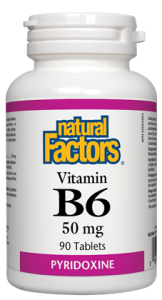 Natural Factors Vitamin B6 provides 50mg of Vitamin B6 (pyridoxine hydrochloride) per serving.