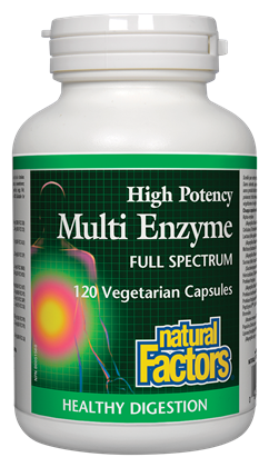 Natural Factors High Potency Multi Enzyme is a spectrum of enzymes to assist and enhance normal digestion. Digestive enzymes do more than aid digestion. Because they are efficient at breaking down protein, carbohydrates, and fats, they stimulate the good bacteria in the digestive tract, detoxify and cleanse the colon. This makes them useful for many conditions related to poor digestion, including seasonal allergies.
