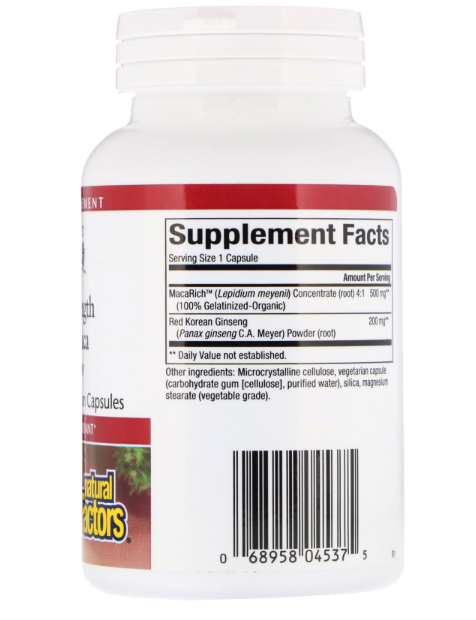 Natural Factors Organic MacaRich combines a 4:1 concentrate of sustainably grown, hand-harvested maca with Korean ginseng to naturally support energy, endurance, and stress reduction. This powerful blend helps enhance physical and mental performance, promote hormonal balance, support a healthy libido, and strengthen the immune system.*