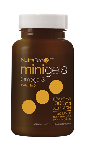 NutraSea+D premium quality omega-3 mini gels have a fresh mint flavour and no fishy burp-back.