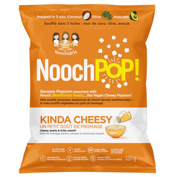 NoochPOP is our love letter to Nutritional Yeast (Nooch). Nooch is the savoury, creamy, key ingredient we put in all our popcorn to give it that yummy cheesy flavour, yet remaining dairy-free.