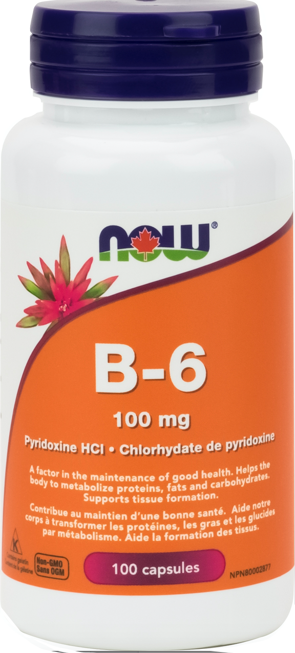 NOW B6 provides 100mg of Vitamin B6 per serving. Vitamin B6, also know as pyridoxine, is one of the most essential and widely used vitamins in the body and popular among consumers. As a coenzyme, B6 participates in over sixty enzymatic reactions involved in the metabolism of amino acids (the building blocks of protein) and essential fatty acids. In this regard, it is needed for the proper maintenance of all body structures and for almost all body functions*. Vitamin B6 is also required for the synthesis of the neurotransmitters serotonin and norepinephrine involved in mood, and for myelin formation around nerves*.
