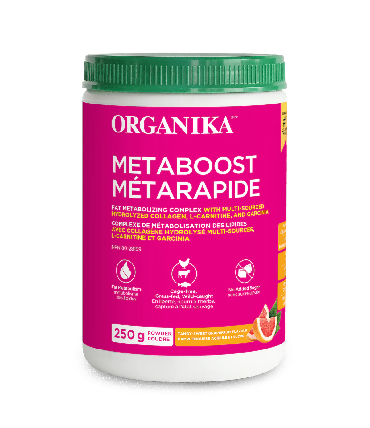 Metaboost Fat Metabolizing Complex combines multi-source hydrolyzed collagen plus natural ingredients such as L-Carnitine and Garcinia to boost your metabolism and get you closer to your goals.
